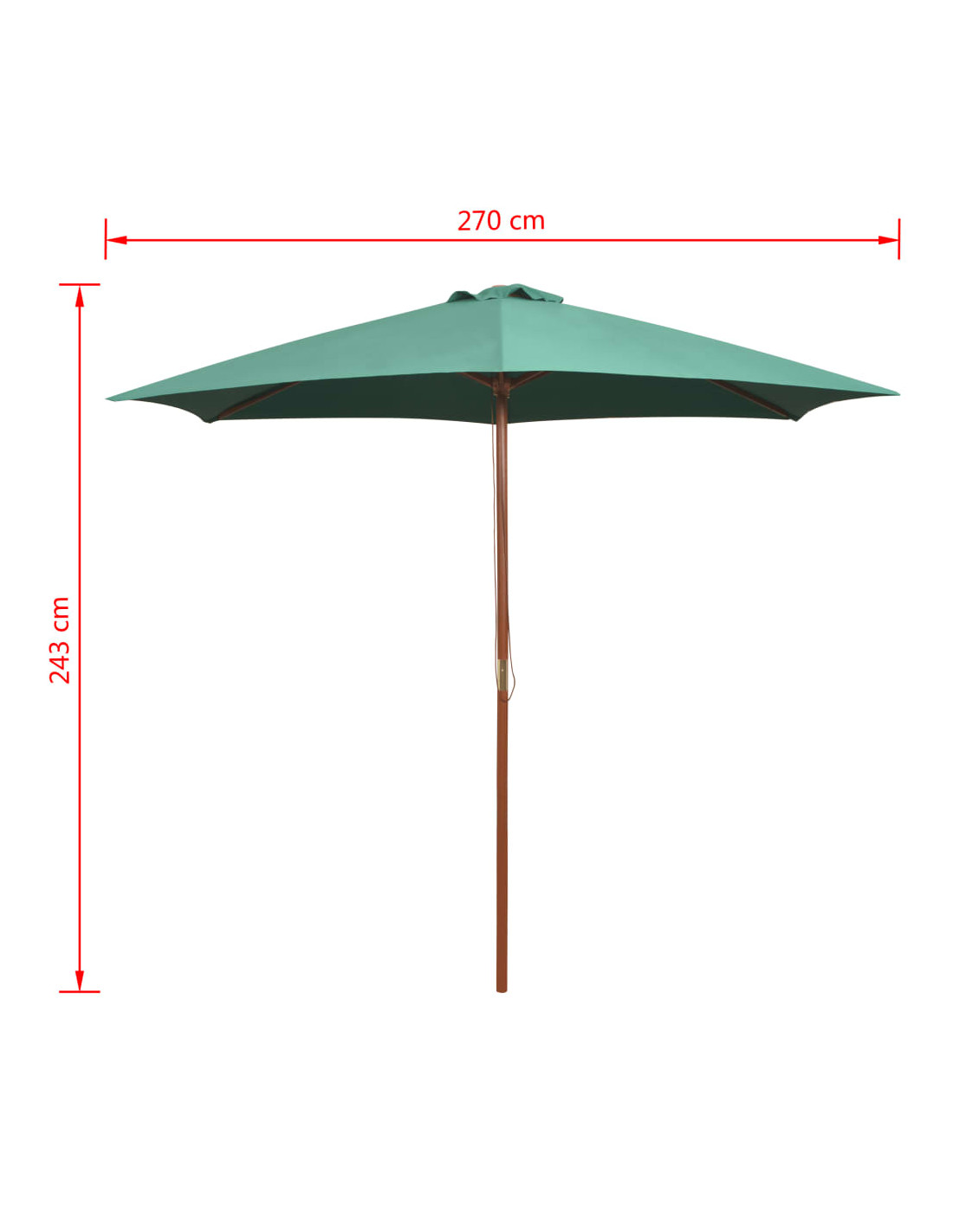 L'ombrellone può essere facilmente aperto e chiuso. Questa copertura per ombrellone è realizzata in poliestere resistente ai raggi UV e con colori inalterabili. Il robusto palo in legno duro in uno splendido colore teak, insieme alle 6 robuste stecche, ne aumentano la stabilità, rendendo l'ombrellone molto durevole per anni di utilizzo.