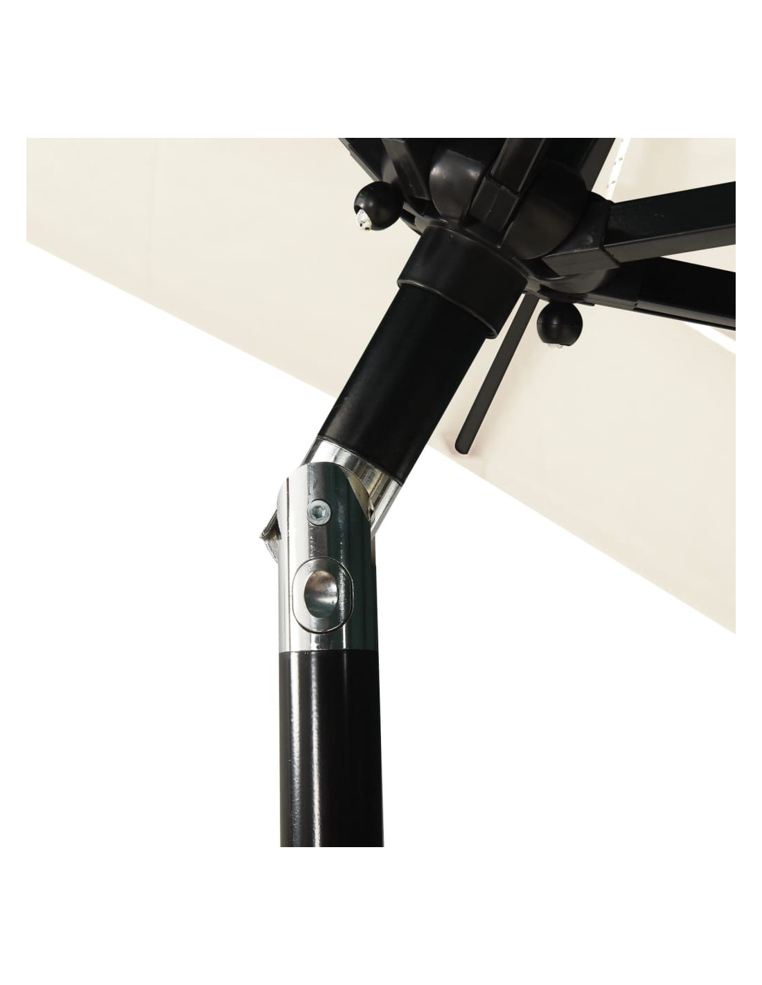 Realizzato in poliestere anti-sbiadimento e in grado di proteggere dai raggi UV, l'ombrellone da esterni fornisce una protezione ottimale dal sole. Il palo e le stecche in alluminio verniciato a polvere garantiscono stabilità. Grazie alla manovella e al meccanismo di inclinazione, l'ombrellone è pieghevole e portatile. Può essere montato sul supporto esistente o al centro di tavoli dotati degli appositi fori.