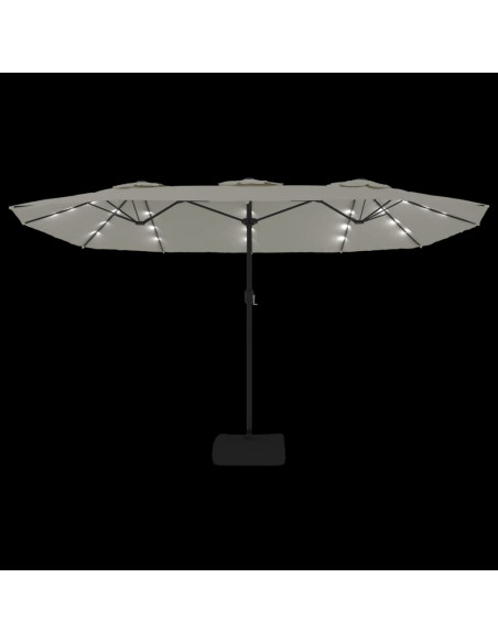 Questo elegante ombrellone a doppia testa con LED è la scelta perfetta per creare un po' di ombra e proteggervi dai dannosi raggi UV del sole.