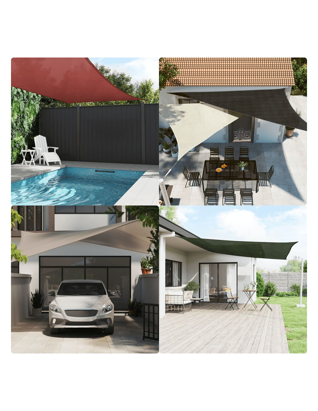 Crea un piccolo riparo dal sole, ovunque tu voglia, con questa vela ombreggiante in HDPE. È la vela ideale da utilizzare in qualsiasi spazio esterno come giardino, terrazza, parco giochi o balcone. La vela solare, realizzata in 100% HDPE (polietilene ad alta densità), ti protegge dai raggi diretti del sole, permette il passaggio dell’aria e è permeabile all’acqua. L’HDPE è appositamente trattato, quindi è resistente alla muffa e ai raggi UV. La vela è facile da montare grazie agli accessori in acciaio inossidabile in ogni angolo e alle corde incluse. Da sapere: questo prodotto richiede ganci compatibili (non inclusi) per un uso corretto. Per garantire una corretta vestibilità, considera la lunghezza complessiva dei ganci e del prodotto durante l’acquisto.
