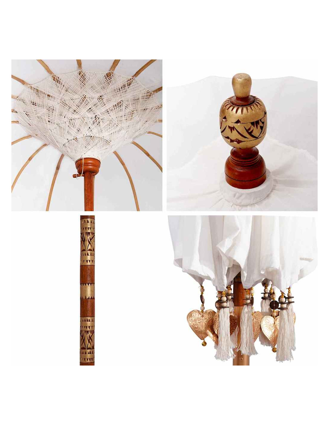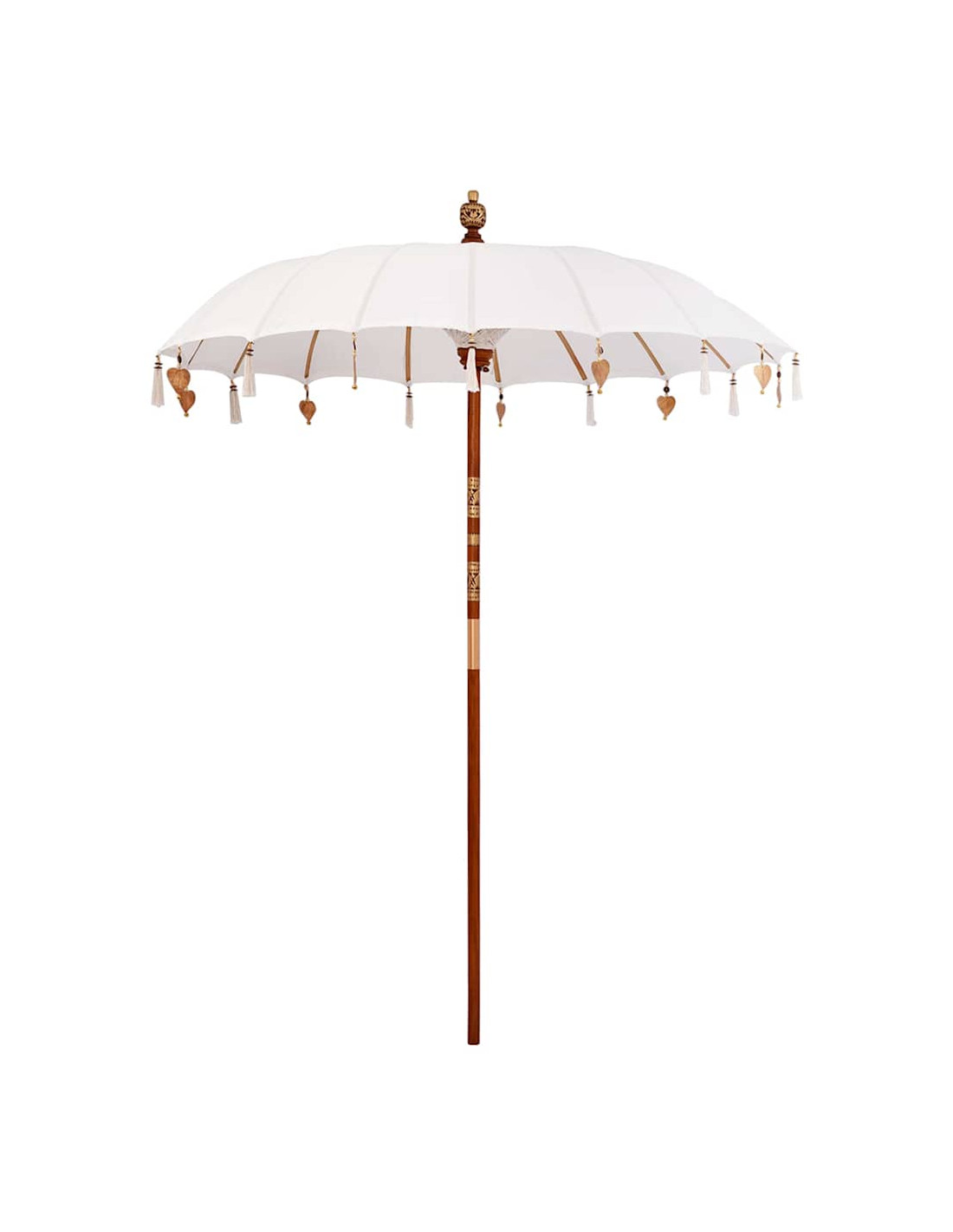 Il Parasol Balinese, arrotondato e colorato, porta un tocco esotico nel tuo spazio all'aperto. Unisce l'estetica balinese con praticità, perfetto per giardini e terrazze. Non solo offre ombra, ma è anche un pezzo visivo vivace e ricco di artigianato.