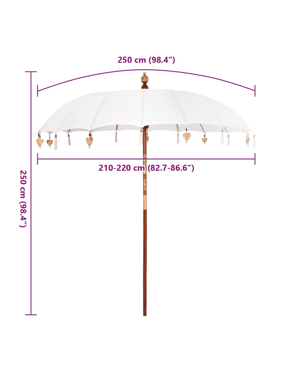 - Materiali: Con una copertura in cotone, questo parasol è leggero ma resistente, permettendo la circolazione d'aria e mantenendo un'ampia ombra. Le costole in bambù garantiscono durata e struttura solida.