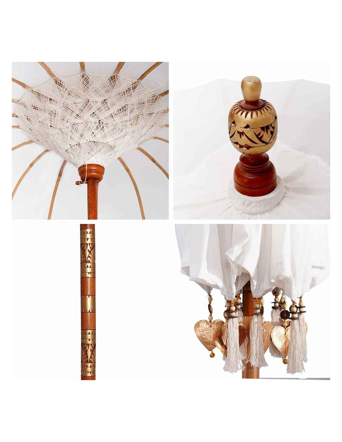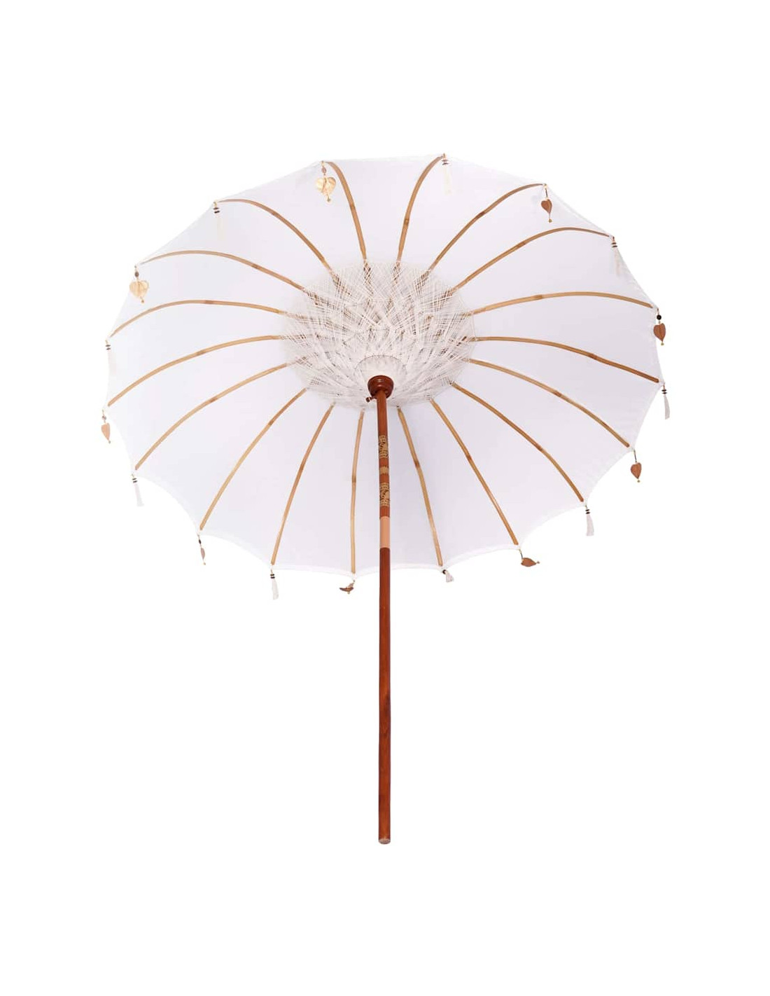 Il Parasol Balinese, arrotondato e colorato, porta un tocco esotico nel tuo spazio all'aperto. Unisce l'estetica balinese con praticità, perfetto per giardini e terrazze. Non solo offre ombra, ma è anche un pezzo visivo vivace e ricco di artigianato.