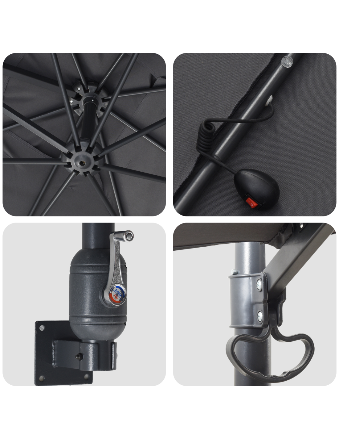 - Illuminazione a LED Le luci LED sotto l'ombrello danno vita alle tue serate all'aperto, creando un'atmosfera calda e accogliente per rimanere più a lungo fuori.