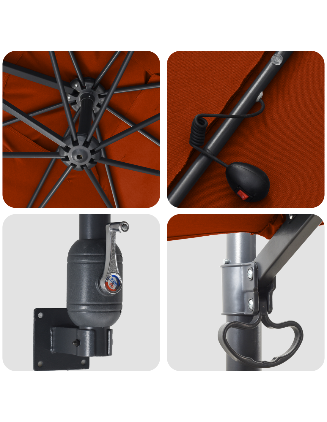 - Illuminazione a LED Le luci LED sotto l'ombrello danno vita alle tue serate all'aperto, creando un'atmosfera calda e accogliente per rimanere più a lungo fuori.