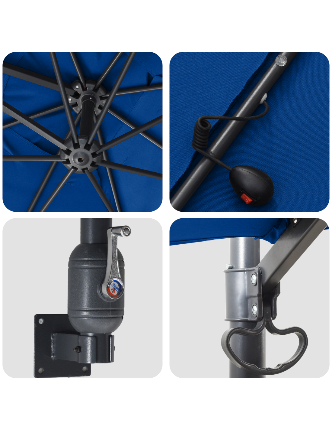 - Illuminazione a LED Le luci LED sotto l'ombrello danno vita alle tue serate all'aperto, creando un'atmosfera calda e accogliente per rimanere più a lungo fuori.