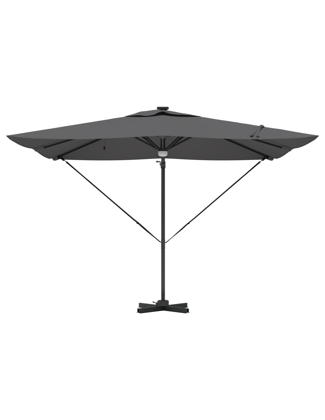 - Luci LED integrate: Le strisce LED portano non solo ombra, ma anche una bella illuminazione per le serate. Le luci sono solari, quindi niente elettricità necessaria, rendendo il parasole ancora più versatile e ecologico.