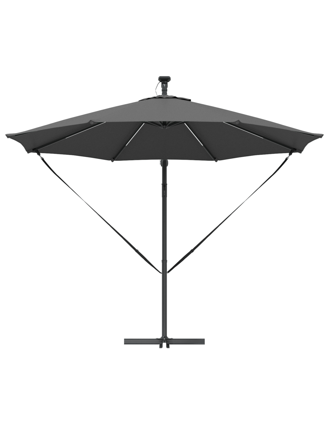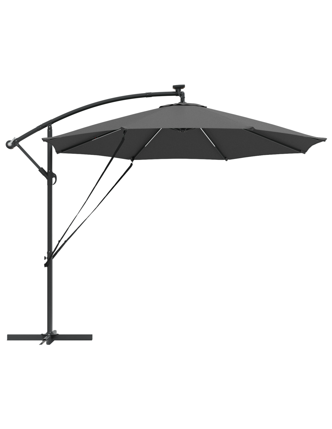 - Illuminazione a LED: Con strisce LED a energia solare, questo ombrellone è elegante e funzionale. Le luci danno un'atmosfera fantastica per cene all'aperto, estendendo il divertimento oltre il tramonto.