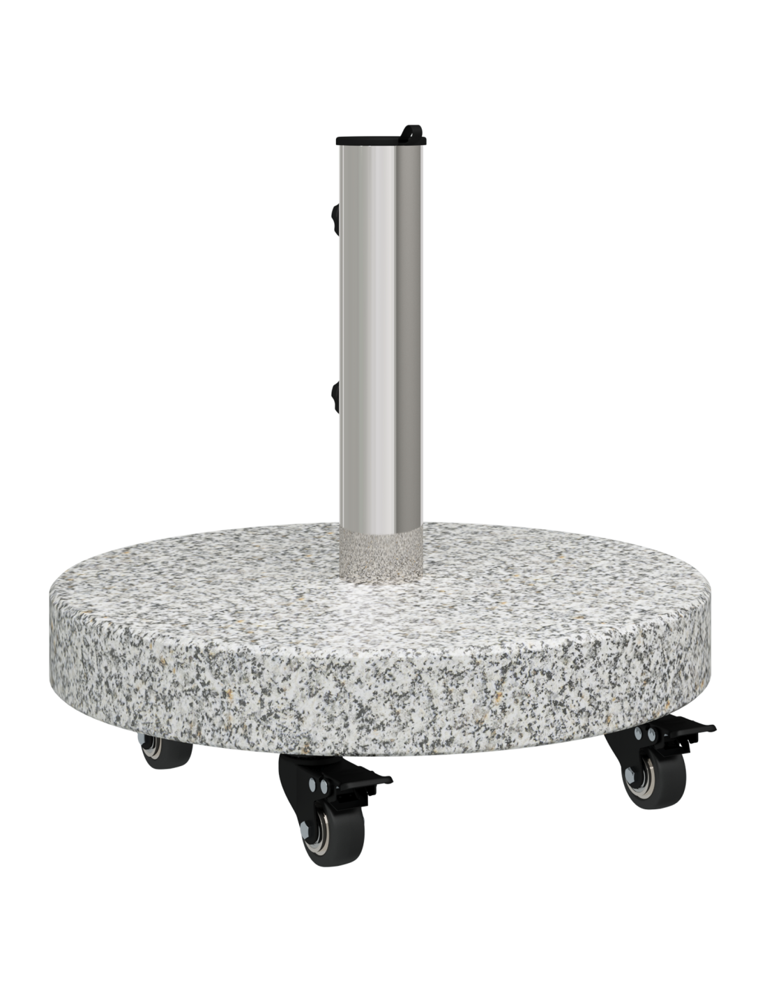 Questa base per ombrellone rotonda è un mix di stile e praticità, ideale per giardini e terrazze. Con un design moderno, è semplice e funzionale, perfetta per il tuo allestimento estivo. La base rotonda in granito assicura stabilità, mentre l'acciaio inox migliora la durata, mantenendo il tuo ombrellone solido anche con il vento. Il meccanismo arrotolabile la rende facile da spostare, così puoi cambiarla senza fatica.
