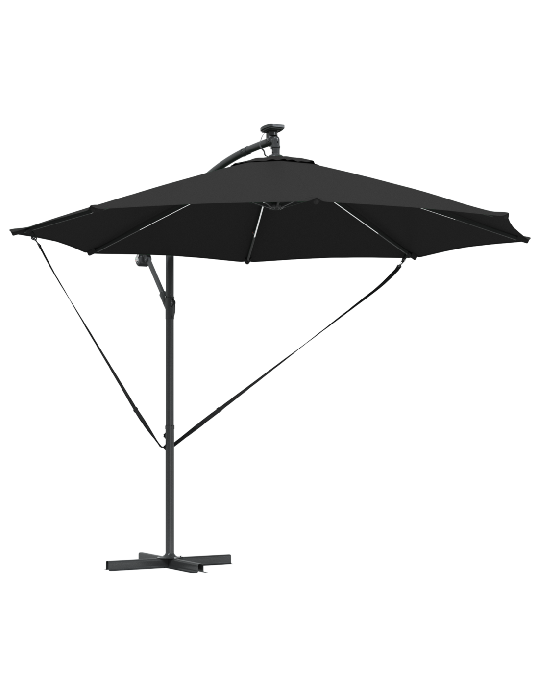 - Illuminazione a LED: Con strisce LED a energia solare, questo ombrellone è elegante e funzionale. Le luci danno un'atmosfera fantastica per cene all'aperto, estendendo il divertimento oltre il tramonto.