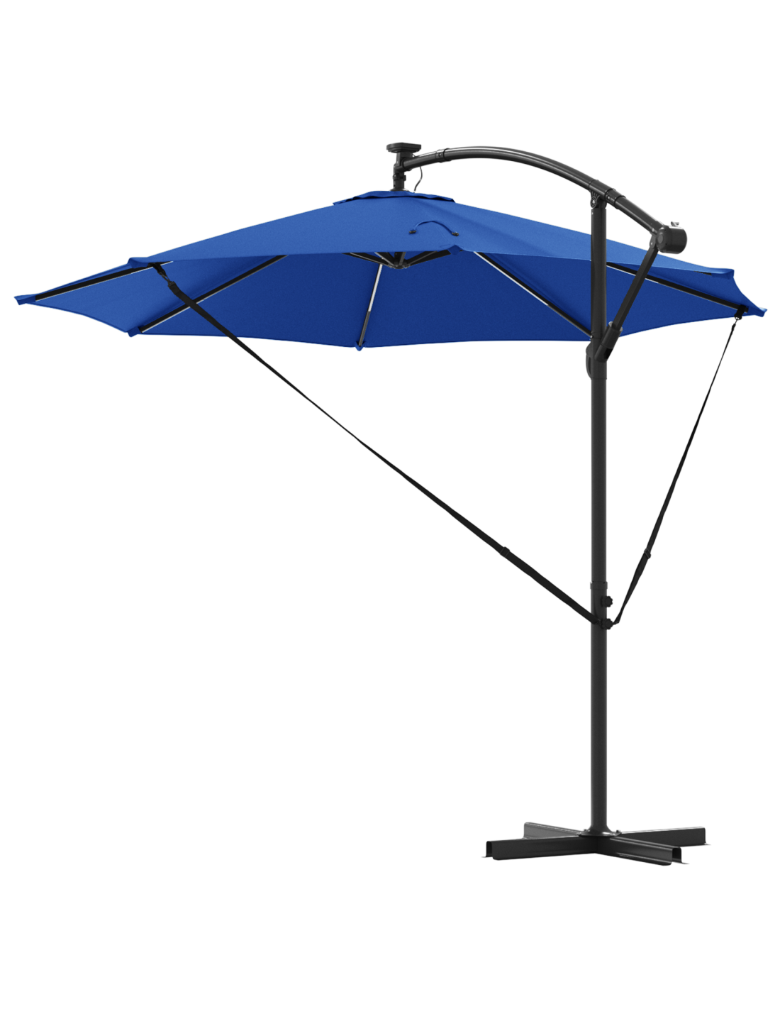 - Illuminazione a LED: Con strisce LED a energia solare, questo ombrellone è elegante e funzionale. Le luci danno un'atmosfera fantastica per cene all'aperto, estendendo il divertimento oltre il tramonto.