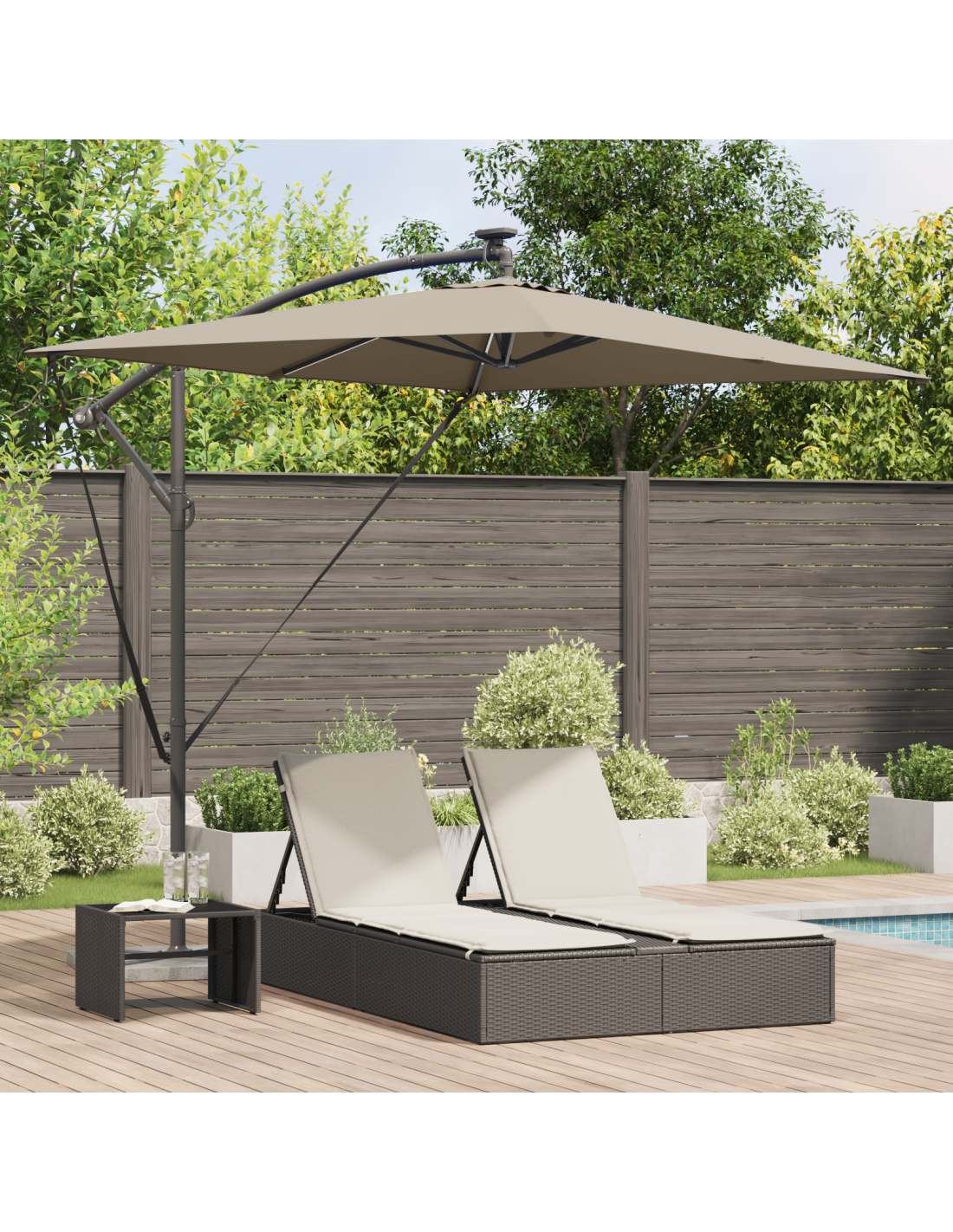 L'Ombrellone a Sbalzo Banana è un'aggiunta fantastica per ogni spazio esterno, unendo stile e funzionalità. Con un design moderno e linee pulite, è perfetto per ambienti contemporanei. Posizionato su un balcone, in giardino o su una terrazza, il telo regolabile ti offre diverse opzioni di ombra per il massimo comfort e protezione durante tutto il giorno. Le sue generose dimensioni coprono ampiamente, garantendo sia riparo dai raggi solari che un'esperienza all'aperto migliorata.