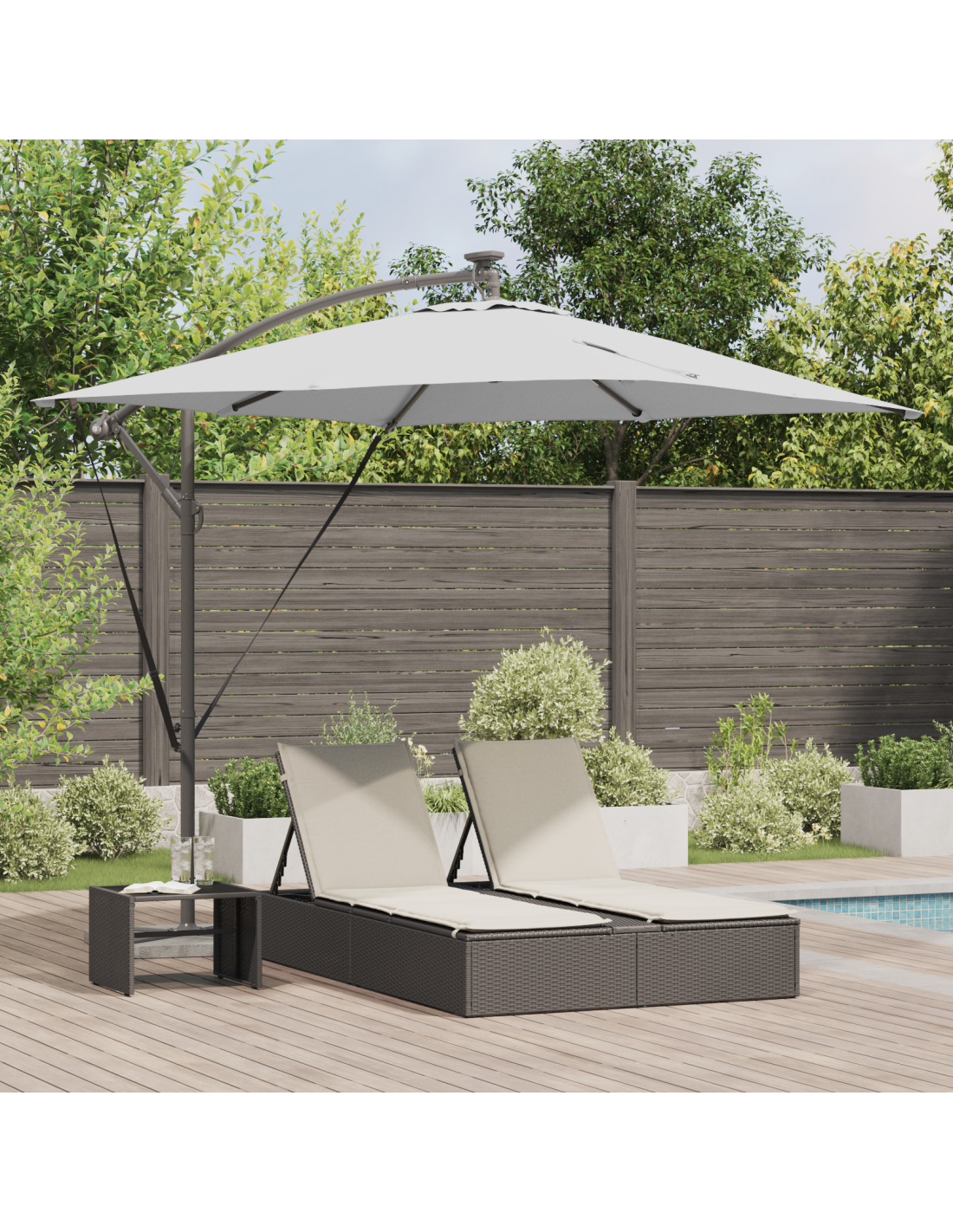 L'ombrello a sbalzo Cantilever Banana è un'ottima aggiunta per qualsiasi spazio esterno, unendo estetica e praticità. Con il suo design moderno, questo ombrello elegante è un vero colpo d'occhio per riunioni all'aperto su balconi, giardini o terrazze. Il suo ampio design e la struttura a sbalzo creano un sacco di ombra comoda, così ti godi il sole senza stress. L'atmosfera che crea è ancora più bella grazie alla sua superficie liscia e alle sue caratteristiche super.
