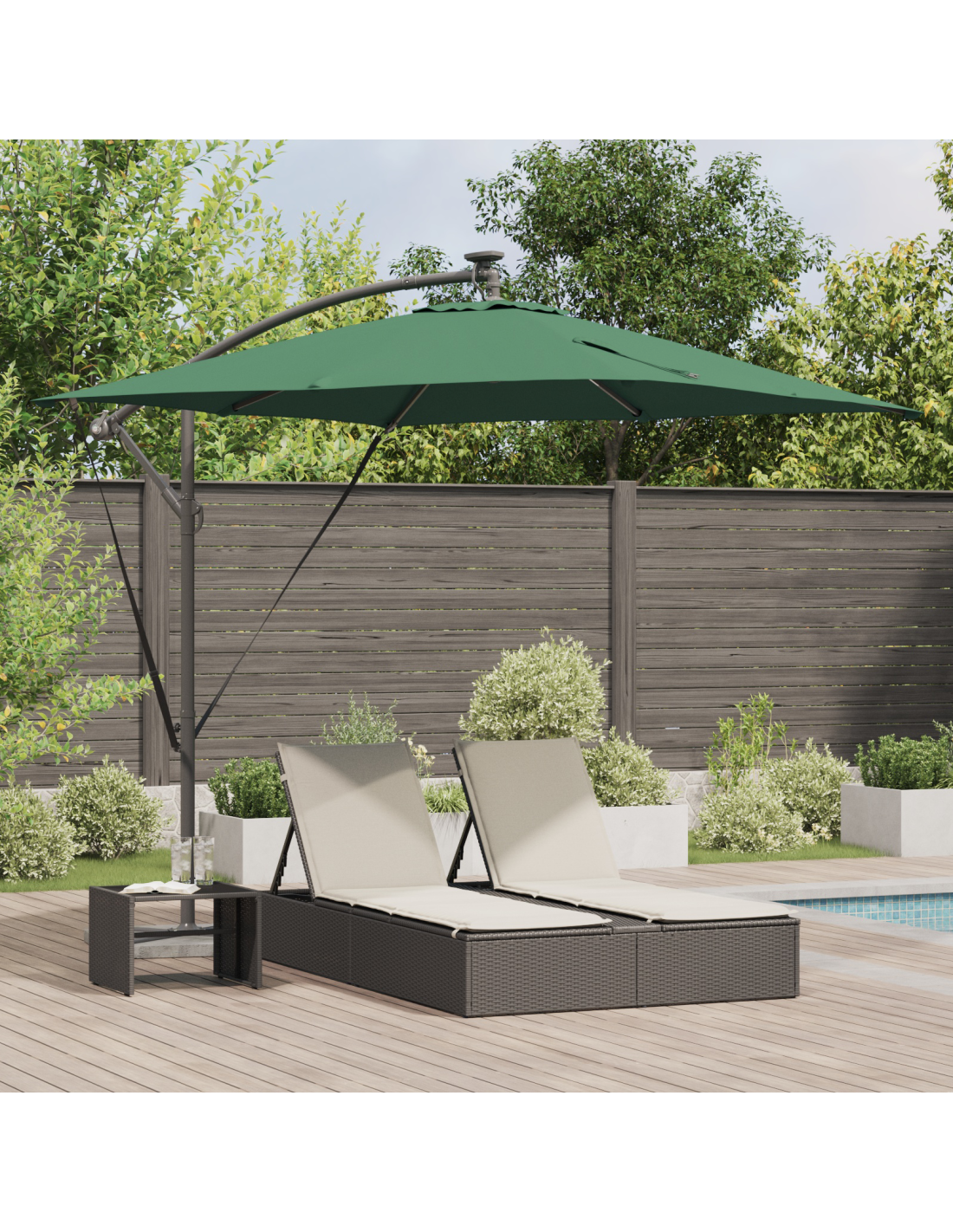 L'ombrello a sbalzo Cantilever Banana è un'ottima aggiunta per qualsiasi spazio esterno, unendo estetica e praticità. Con il suo design moderno, questo ombrello elegante è un vero colpo d'occhio per riunioni all'aperto su balconi, giardini o terrazze. Il suo ampio design e la struttura a sbalzo creano un sacco di ombra comoda, così ti godi il sole senza stress. L'atmosfera che crea è ancora più bella grazie alla sua superficie liscia e alle sue caratteristiche super.