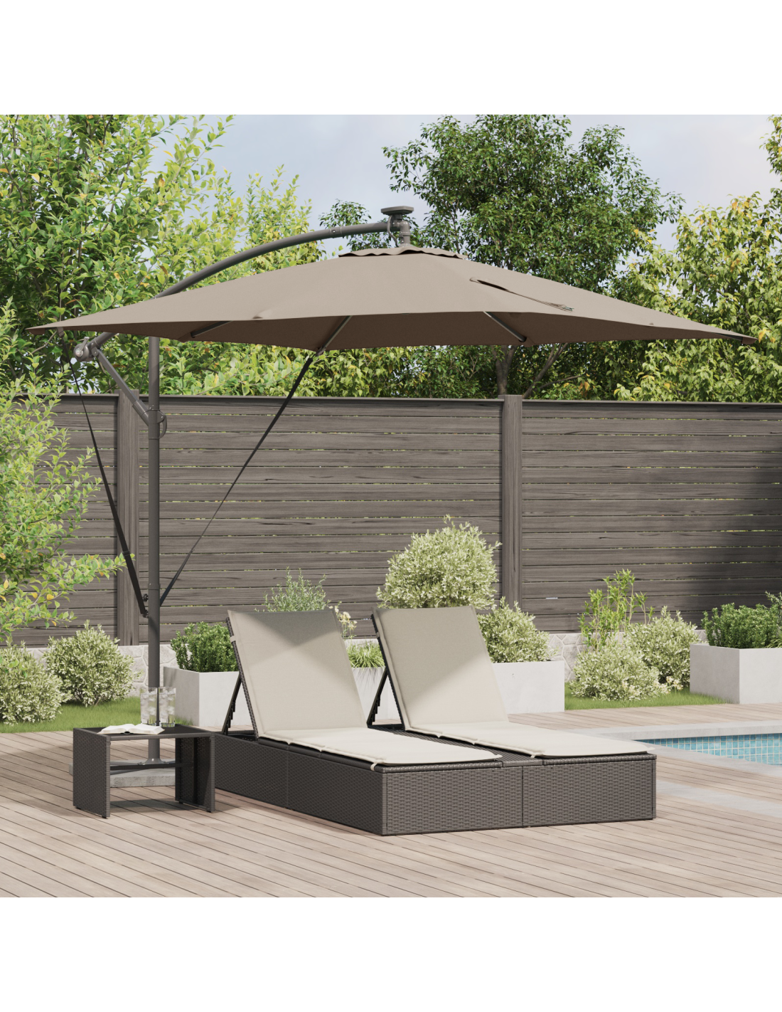 L'ombrello a sbalzo Cantilever Banana è un'ottima aggiunta per qualsiasi spazio esterno, unendo estetica e praticità. Con il suo design moderno, questo ombrello elegante è un vero colpo d'occhio per riunioni all'aperto su balconi, giardini o terrazze. Il suo ampio design e la struttura a sbalzo creano un sacco di ombra comoda, così ti godi il sole senza stress. L'atmosfera che crea è ancora più bella grazie alla sua superficie liscia e alle sue caratteristiche super.
