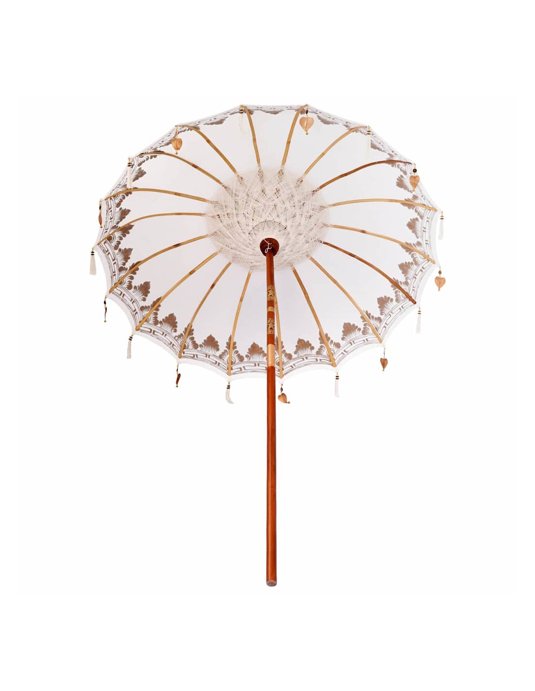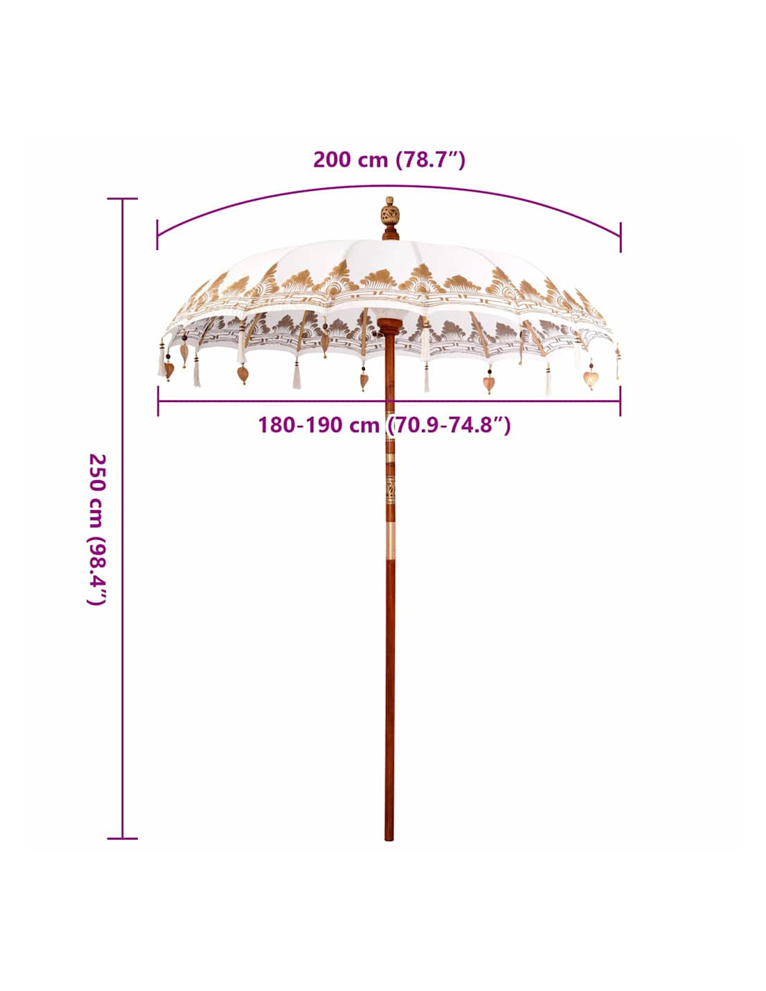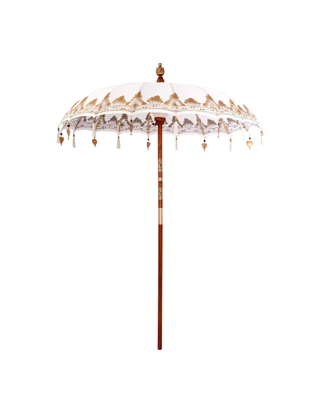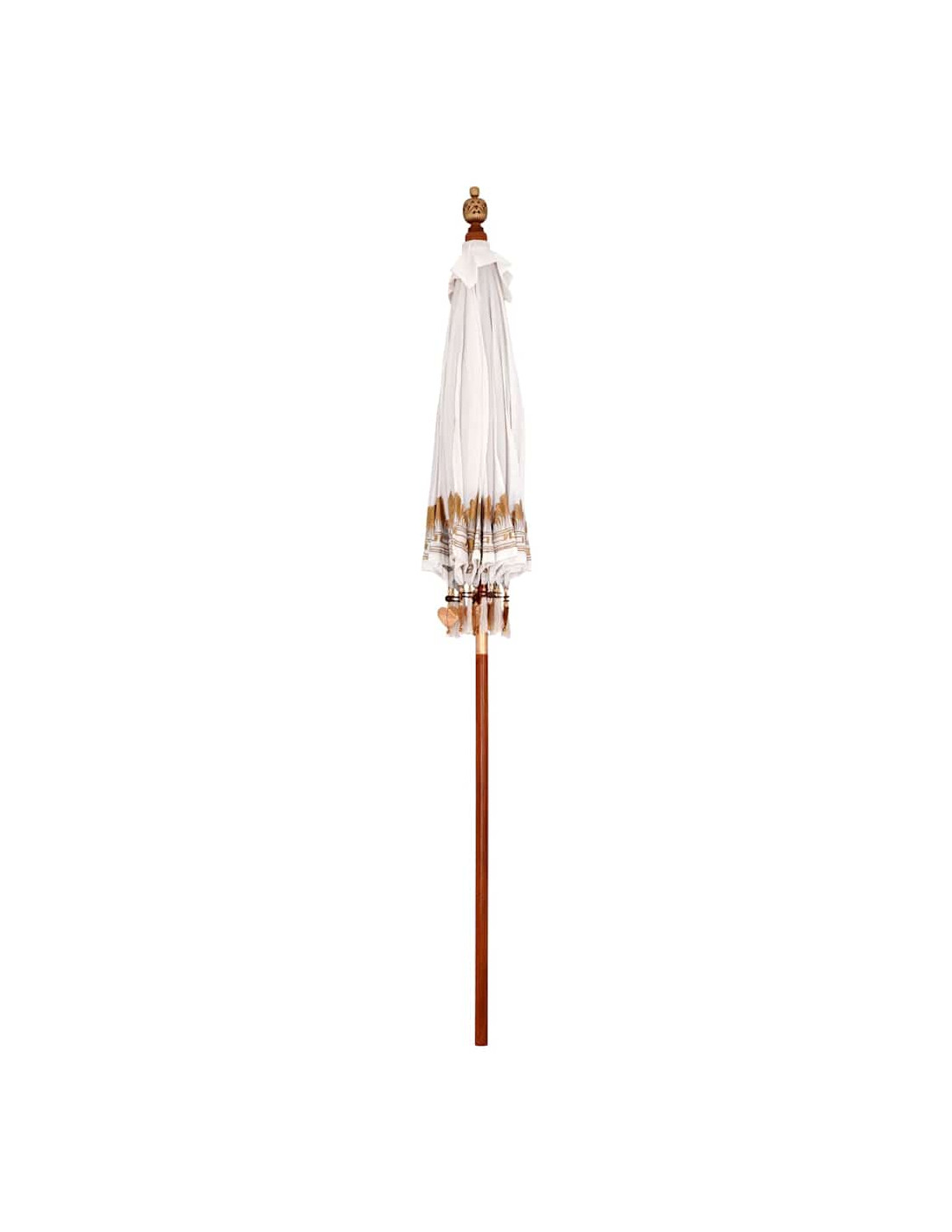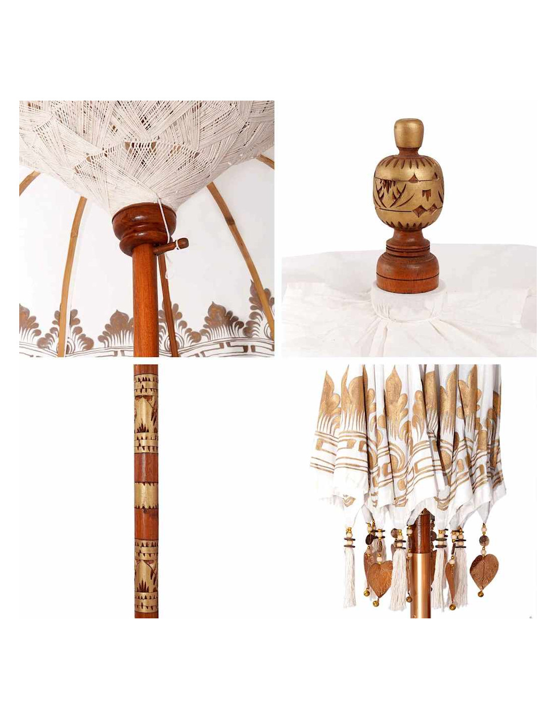 Il parasole balinese è un bellissimo ombrello per esterno che porta un tocco di eleganza esotica a qualsiasi giardino o terrazza. Questa struttura da patio ha una copertura rotonda in cotone, ricamata a mano, che lo rende davvero unico. Perfetto per le feste estive, trasmette vibrazioni tropicali rilassanti mentre offre l'ombra necessaria con il suo ampio diametro. La sua estetica balinese serena porta un fascino naturale che si adatta perfettamente sia ai pranzi all'aperto sia ai momenti di relax sotto la copertura di questo parasole speciale.