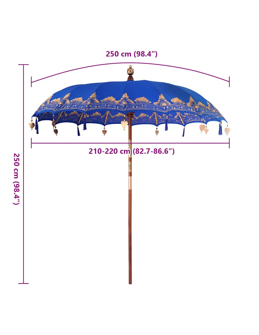 Il parasole balinese è un bellissimo ombrello per esterno che porta un tocco di eleganza esotica a qualsiasi giardino o terrazza. Questa struttura da patio ha una copertura rotonda in cotone, ricamata a mano, che lo rende davvero unico. Perfetto per le feste estive, trasmette vibrazioni tropicali rilassanti mentre offre l'ombra necessaria con il suo ampio diametro. La sua estetica balinese serena porta un fascino naturale che si adatta perfettamente sia ai pranzi all'aperto sia ai momenti di relax sotto la copertura di questo parasole speciale.