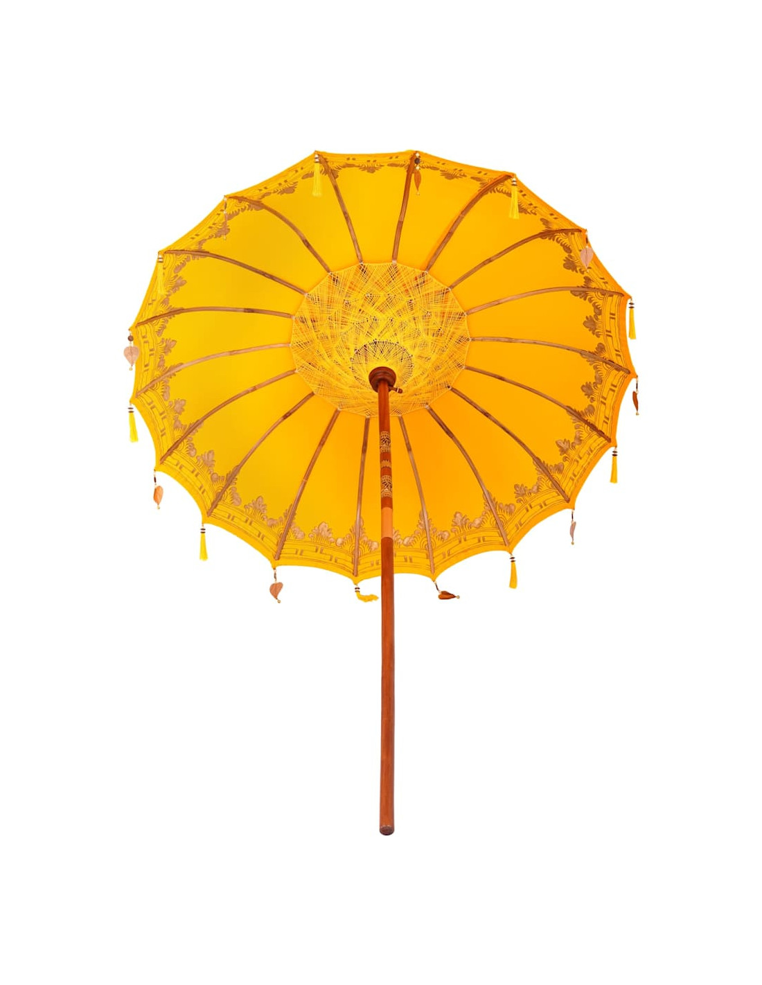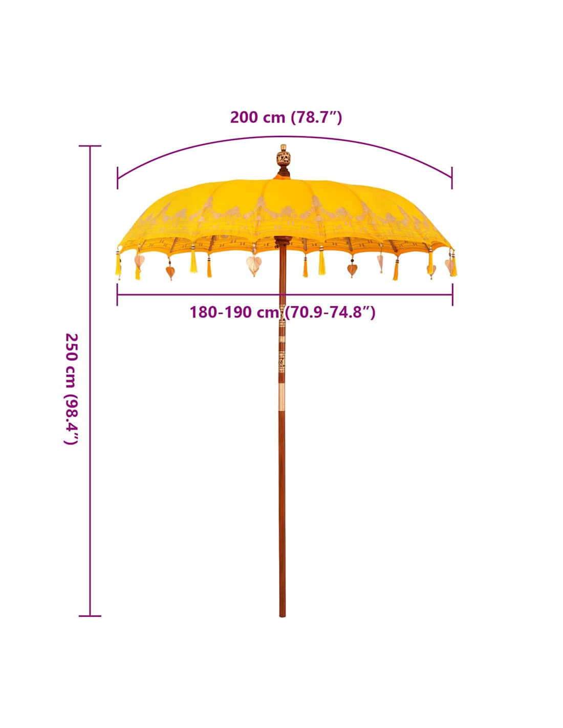 Il parasole balinese è un bellissimo ombrello per esterno che porta un tocco di eleganza esotica a qualsiasi giardino o terrazza. Questa struttura da patio ha una copertura rotonda in cotone, ricamata a mano, che lo rende davvero unico. Perfetto per le feste estive, trasmette vibrazioni tropicali rilassanti mentre offre l'ombra necessaria con il suo ampio diametro. La sua estetica balinese serena porta un fascino naturale che si adatta perfettamente sia ai pranzi all'aperto sia ai momenti di relax sotto la copertura di questo parasole speciale.