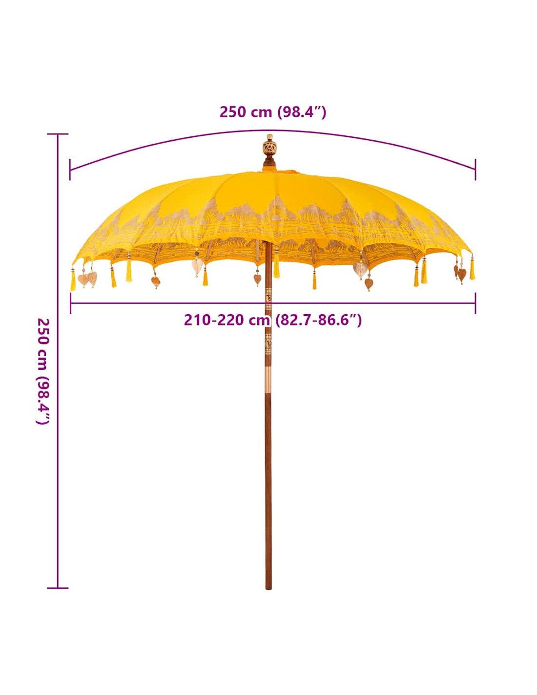 Il parasole balinese è un bellissimo ombrello per esterno che porta un tocco di eleganza esotica a qualsiasi giardino o terrazza. Questa struttura da patio ha una copertura rotonda in cotone, ricamata a mano, che lo rende davvero unico. Perfetto per le feste estive, trasmette vibrazioni tropicali rilassanti mentre offre l'ombra necessaria con il suo ampio diametro. La sua estetica balinese serena porta un fascino naturale che si adatta perfettamente sia ai pranzi all'aperto sia ai momenti di relax sotto la copertura di questo parasole speciale.