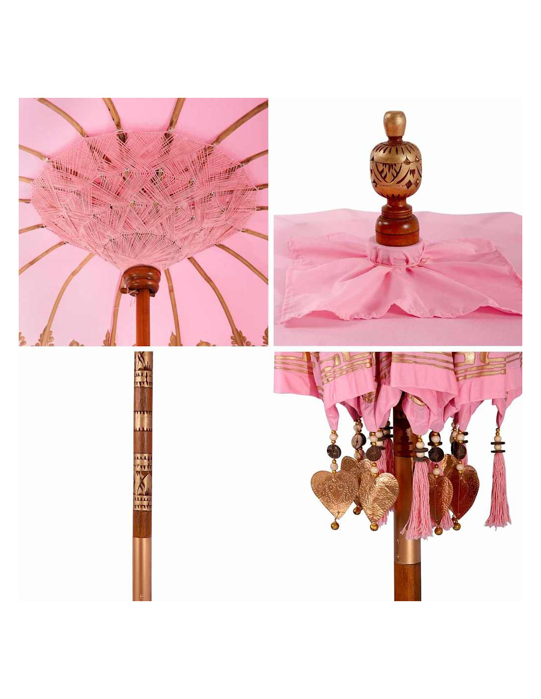 Il parasole balinese è un bellissimo ombrello per esterno che porta un tocco di eleganza esotica a qualsiasi giardino o terrazza. Questa struttura da patio ha una copertura rotonda in cotone, ricamata a mano, che lo rende davvero unico. Perfetto per le feste estive, trasmette vibrazioni tropicali rilassanti mentre offre l'ombra necessaria con il suo ampio diametro. La sua estetica balinese serena porta un fascino naturale che si adatta perfettamente sia ai pranzi all'aperto sia ai momenti di relax sotto la copertura di questo parasole speciale.