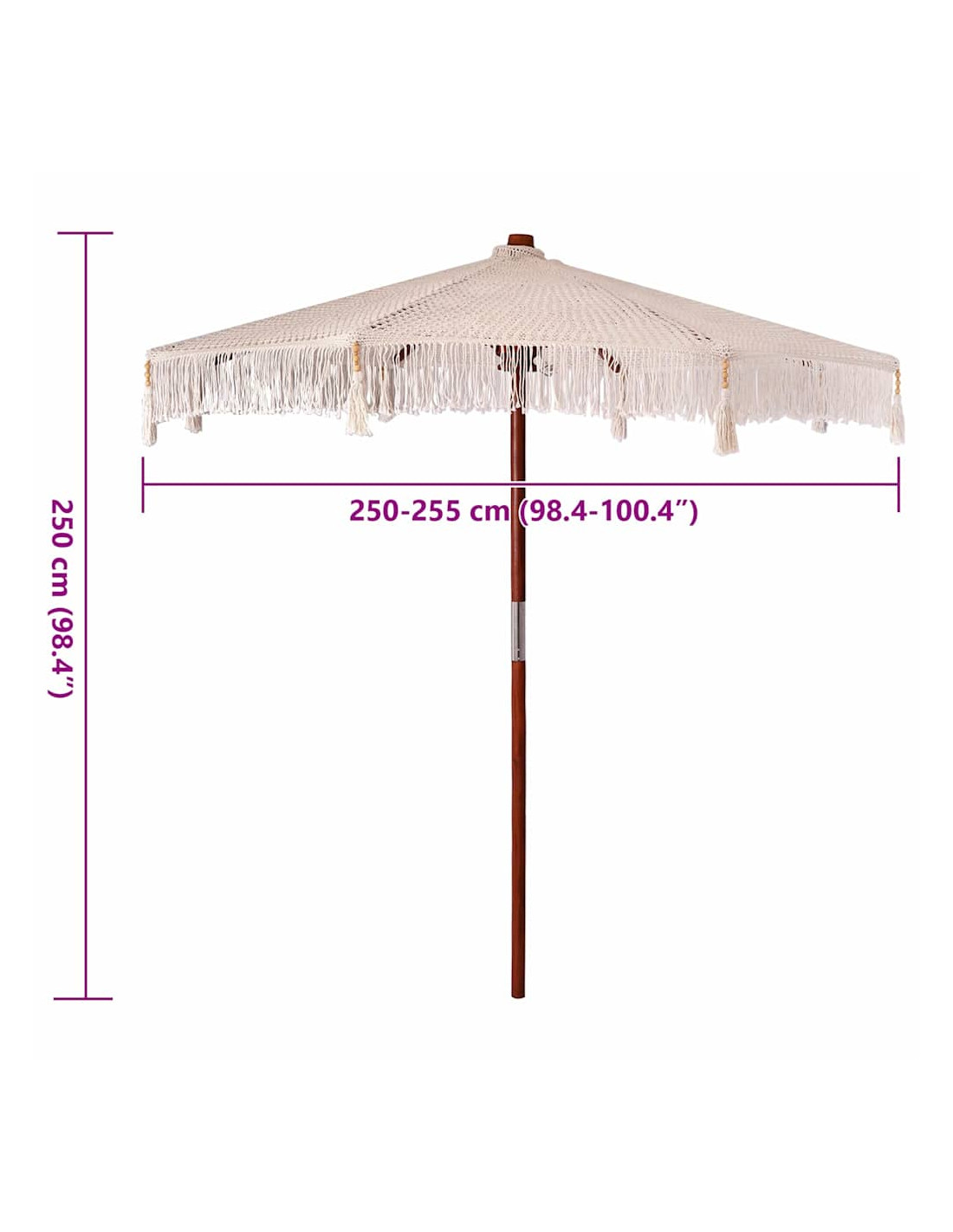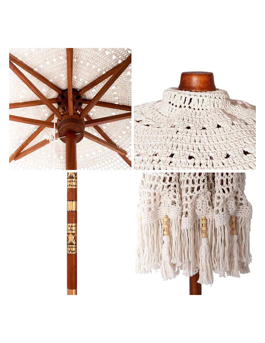 - Materiale: Realizzato in cotone traspirante, il Parasol Macramè offre una sensazione morbida e resistente. I suoi motivi intrecciati completano il colore crema, aggiungendo un tocco di eleganza a ogni spazio. La traspirabilità rende le giornate estive ancora più piacevoli.