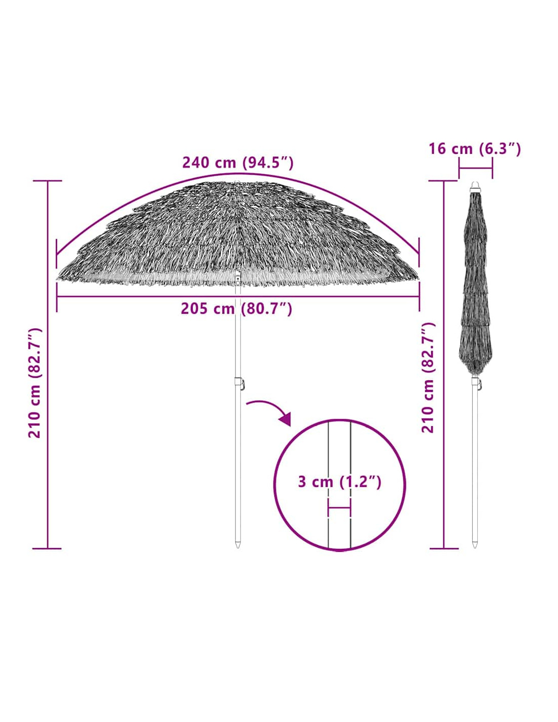 Questo ombrellone da giardino in stile hawaiano porta un tocco esotico al tuo spazio all'aperto, ideale per trasformare il tuo giardino o la tua terrazza in un angolo di paradiso. Creato per essere pratico, unisce bellezza e funzionalità. Con il suo colore naturale e stile tropicale, si adatta perfettamente a qualsiasi arredamento, offrendo un fresco rifugio sotto il suo ampio telo. Che tu stia cenando all'aperto o semplicemente rilassandoti con amici e familiari, rimarrai protetto dal sole mentre ti godi l'atmosfera tropicale.