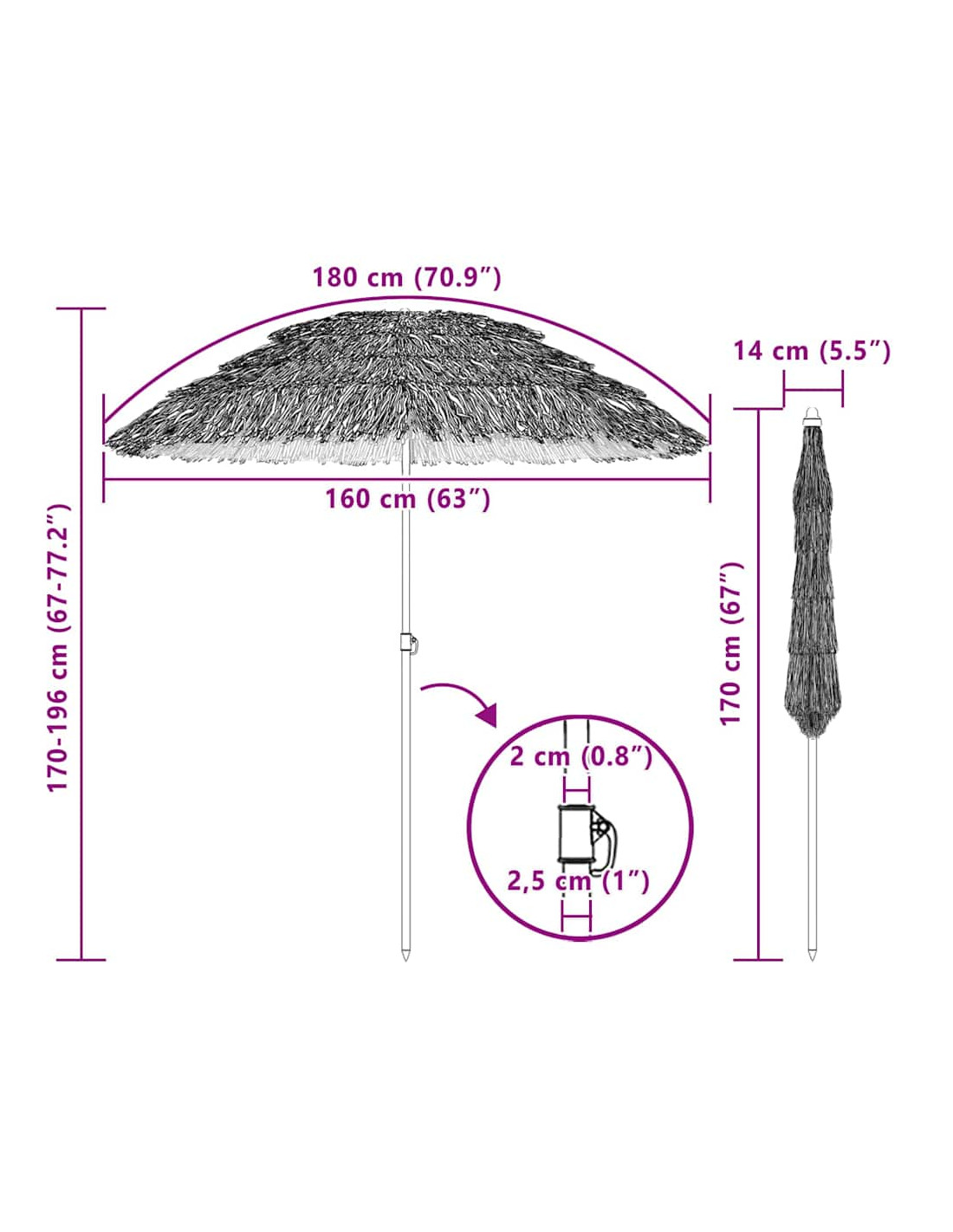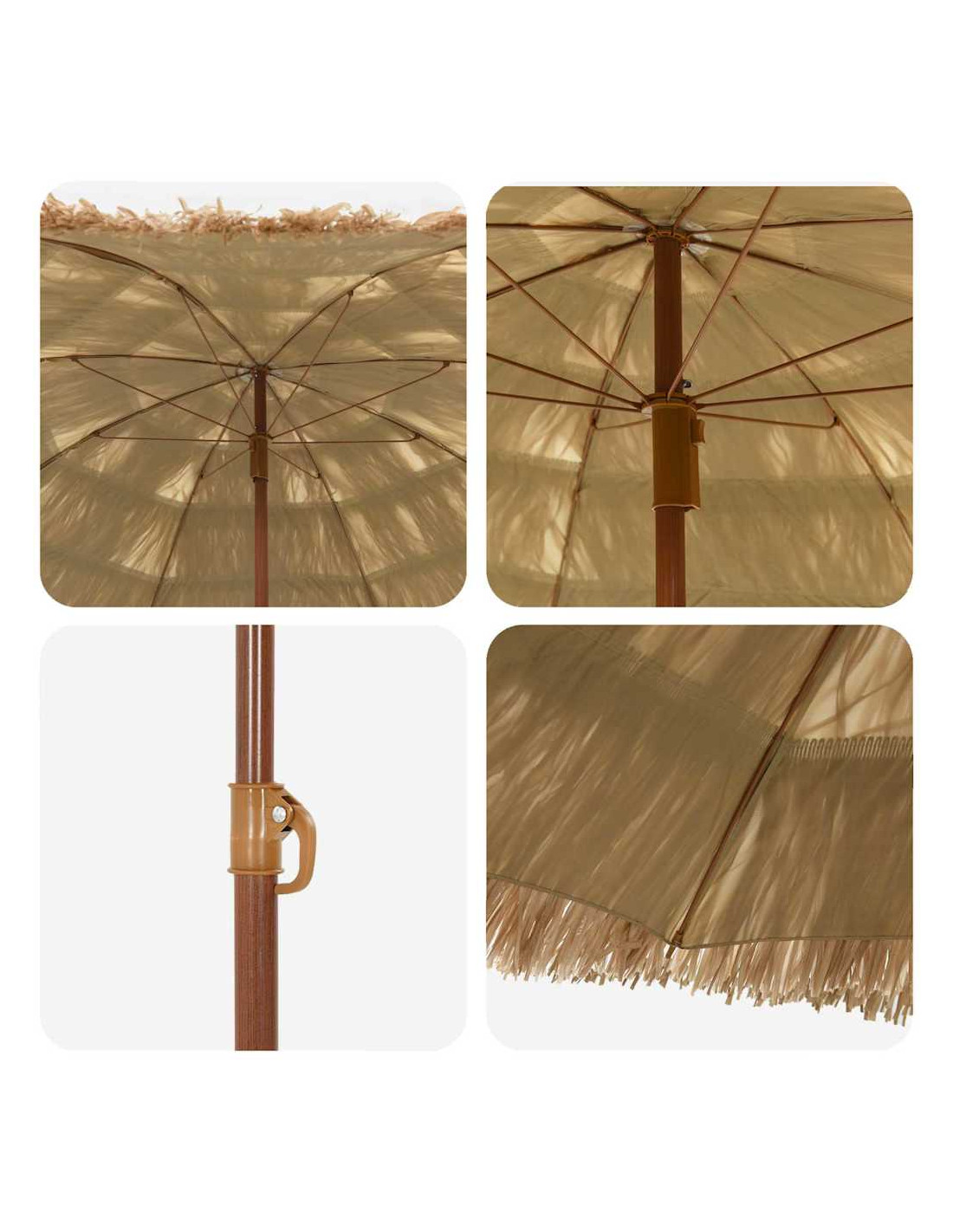 Questo ombrellone da spiaggia è l'accessorio ideale per chi ama stare all'aria aperta, unendo stile e funzionalità. È pensato per giardini e spiagge, combinando bellezza naturale e praticità. La forma unica si adatta a diverse disposizioni, offrendo ampio ombreggiamento per goderti il sole in modo sereno. Il suo stile tropicale rende l'ambiente più vivo e accogliente.