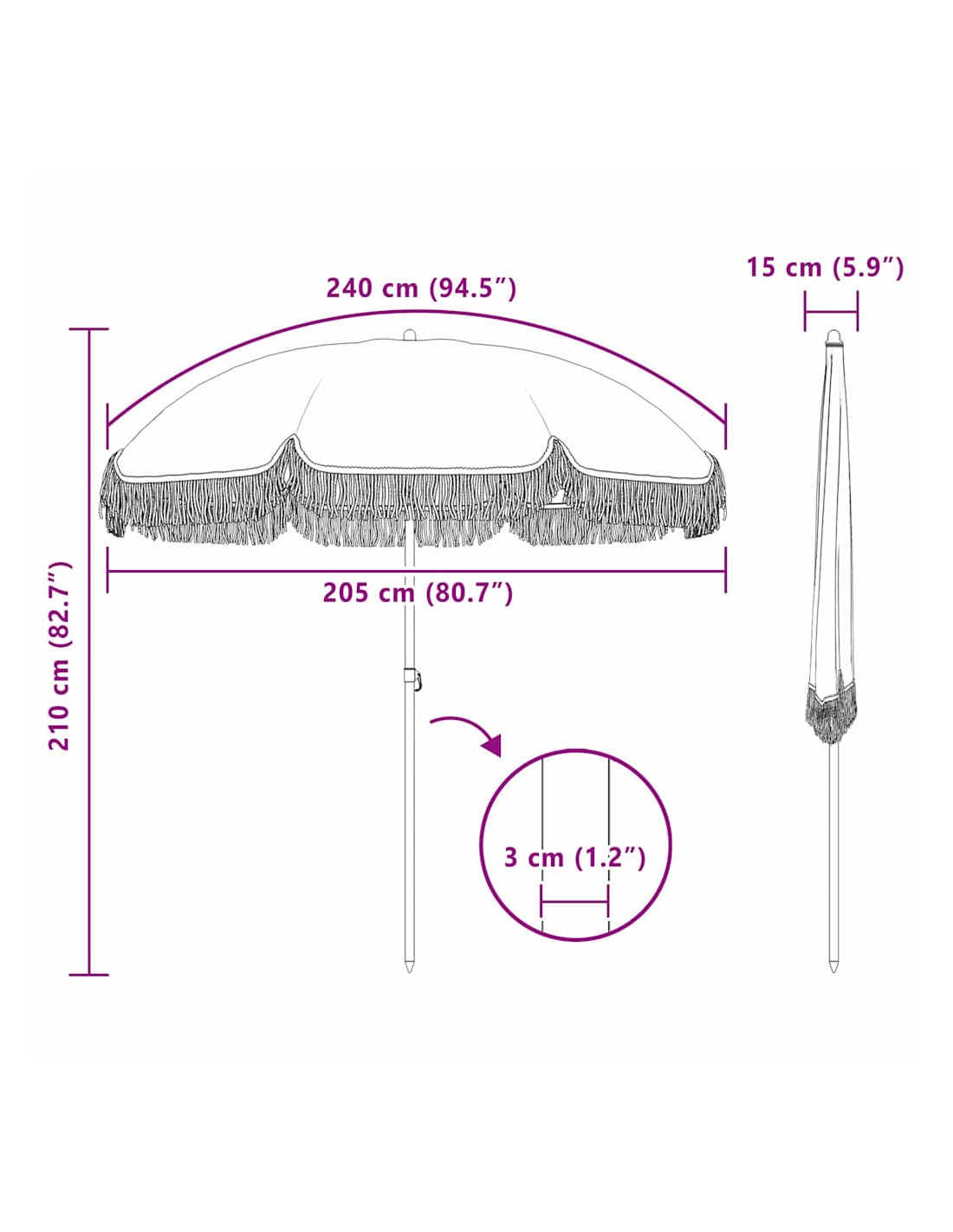 L'ombrellone da spiaggia unisce perfettamente bellezza moderna e funzionalità, ed è ideale per chi cerca ombra nelle calde giornate estive. Le linee pulite e il design semplice si integrano bene con terrazze e giardini, offrendo protezione ma anche un tocco di eleganza. Con la sua forma, offre un'ampia copertura, perfetta per riunioni familiari al mare o relax in giardino.