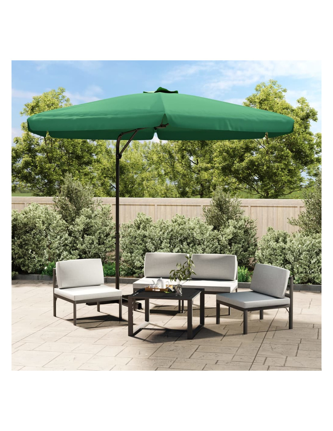 La fodera di questo parasole è stata realizzata in poliestere resistente ai raggi UV e anti-sbiadimento, offrendo una protezione ottimale contro il sole e risultando facile da pulire. È dotato di una robusta base a croce in acciaio per aumentarne la stabilità. Il robusto palo in acciaio, insieme alle 6 stecche resistenti, rendono l'ombrellone molto stabile e durevole. L'ombrello da giardino può essere facilmente aperto e chiuso grazie al meccanismo a manovella. L'articolo è facile da assemblare.