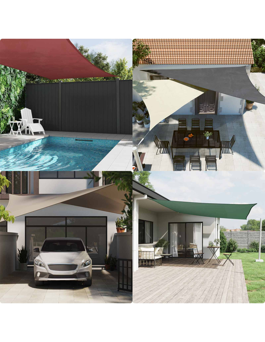 Questa vela parasole è fatta di tessuto di poliestere oxford, perfetta per creare un'area ombreggiata nei tuoi spazi esterni. È progettata per resistere ai raggi UV e all'acqua, ottima per patii, giardini o aree vicino alla piscina. La struttura è rinforzata e ha anelli a D in acciaio inox agli angoli, che garantiscono un ancoraggio sicuro. Leggera e facile da piegare, puoi montarla con le corde incluse e riporla senza problemi. È una soluzione pratica per proteggerti dal sole e dal vento in diversi luoghi all'aperto, come balconi e giardini. Resistenza agli agenti atmosferici: Questa vela parasole è in tessuto di poliestere oxford. Ti protegge dai raggi del sole ed è impermeabile, così puoi goderti il tuo spazio esterno sia che ci sia sole che una leggera pioggia. Design portatile: Questa vela è pieghevole e facile da riporre. Puoi trasportarla per attività come campeggi e picnic, e riporla facilmente in spazi limitati o nel bagagliaio dell’auto quando non ti serve. Anelli in acciaio inox: Ogni angolo ha un anello a D in acciaio inox per ancorarla in modo sicuro. Questi anelli lucidi sono saldati e offrono stabilità con corde o kit di fissaggio. Facile da installare: Le corde per il montaggio sono incluse. Ti consigliamo di fissare la vela in un angolo alto per permettere all’acqua piovana di defluire e prevenire moto d’accumulo. Il materiale è pensato per semplificare l’installazione. Uso versatile: Questa vela parasole è adatta a vari ambienti, come giardini, patii e piscine. Ti offre riparo temporaneo dal sole e dal vento e si integra bene con l’esterno, creando zone ombreggiate secondo necessità.