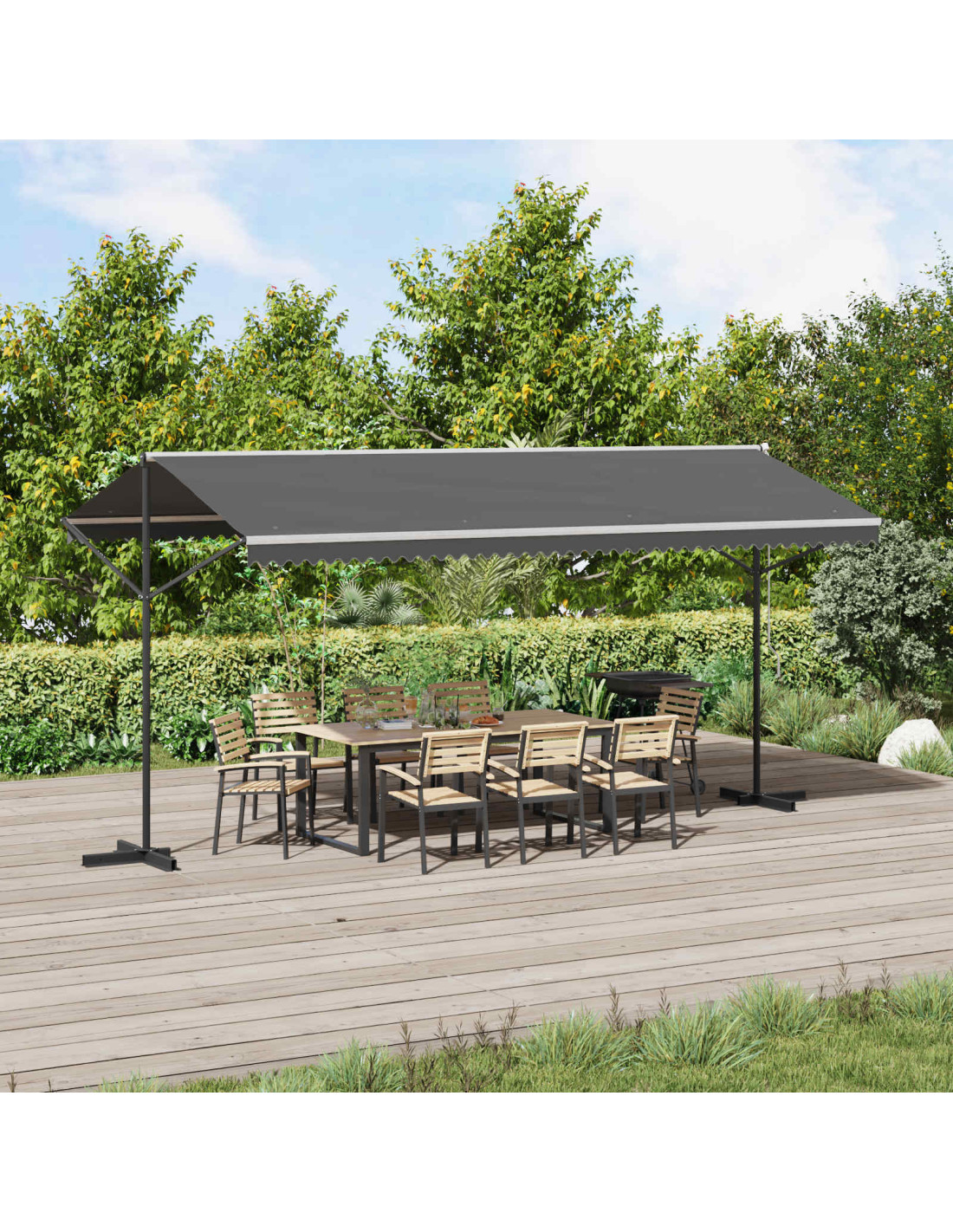 Questa tenda autoportante è pratica per dare ombra agli spazi esterni. Il tessuto è rivestito in PU e il telaio in acciaio verniciato a polvere assicura supporto e durata. Puoi regolare l'area ombreggiata con facilità, rendendola perfetta per giardini, patii e altre aree all'aperto. Tessuto rivestito in PU: La tenda è fatta con un tessuto che resiste all'uso quotidiano all'aperto. Grazie al rivestimento, dura di più e crea un'area ombreggiata confortevole per patii, balconi o giardini. Struttura in acciaio verniciato a polvere: Con un telaio in acciaio verniciato, offre supporto stabile e durevole per l'uso quotidiano. Il rivestimento la protegge dall'umidità e dall'usura, mantenendola sempre bella. Area ombreggiata regolabile: Puoi regolare la tenda facilmente in base alle tue esigenze, espandendo o riducendo la copertura dell'ombra. Questa flessibilità la rende adatta a qualsiasi layout esterno e ai cambiamenti del sole, offrendoti comfort durante il giorno. Uso versatile: Perfetta per patii, balconi o giardini, la tenda offre una soluzione pratica per creare ombra e si integra bene con tanti stili esterni. Facile da pulire: Puoi pulire il tessuto con un panno umido per rimuovere polvere e sporco. Questa semplice routine ti assicura di mantenere un aspetto fresco e ordinato nel tempo.