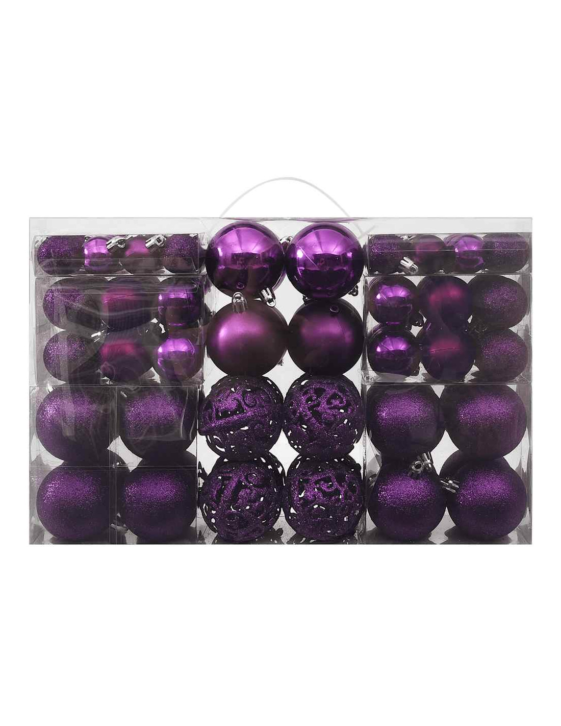 Queste luccicanti palline di Natale, di 3 diverse dimensioni, costituiscono, grazie al loro design accattivante, le decorazioni perfette per il vostro albero di Natale. Anche se hanno l'aspetto del vetro, sono realizzate in plastica, per cui non dovrete preoccuparvi che si possano rompere. Le palline sono molto leggere, quindi anche i vostri bambini possono aiutarvi a decorare l'albero di Natale. Vengono fornite con una custodia per una facile conservazione.