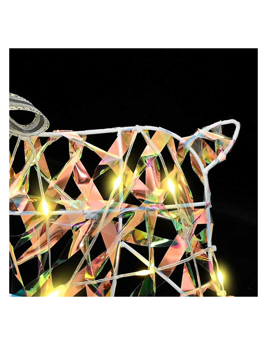 - Illuminazione a LED La renna di Natale è abbellita da luci LED che creano affascinanti giochi di luce sulla superficie. Questa scelta non solo mette in evidenza la qualità artigianale, ma arricchisce anche l'atmosfera festiva della tua casa senza bisogno di altre luci.