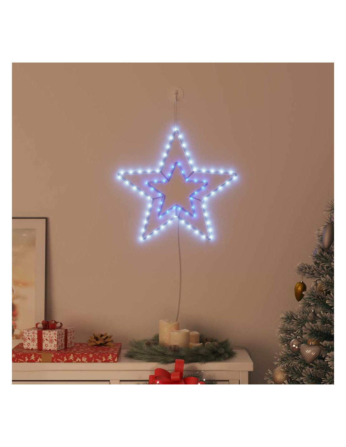 - Luci a Corda Integrate Con luci a corda flessibili, questa stella è pensata per sollevare il tuo spirito natalizio. Le luci creano un'esperienza di illuminazione incredibile che cattura davvero l'atmosfera festiva.