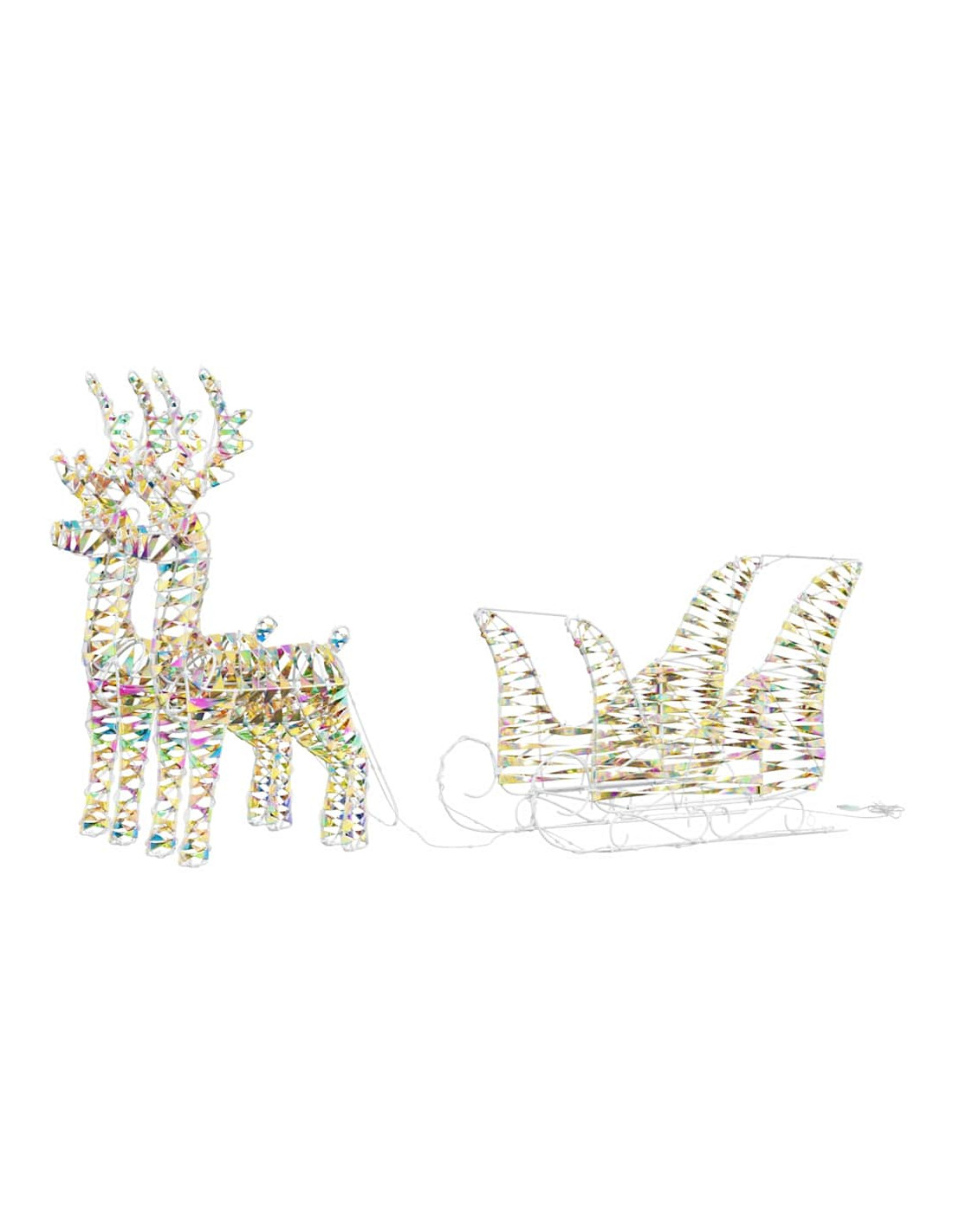 Questo pezzo decorativo natalizio a forma di slitta trainata da renna è l'aggiunta perfetta a qualsiasi allestimento festivo, unendo eleganza moderna a linee semplici e uno stile minimalista. Realizzato con materiali di alta qualità, è visivamente accattivante e si integra facilmente in soggiorni e terrazze da giardino, con toni caldi di bianco che portano un tocco incantevole alla decorazione. Le sue dimensioni lo rendono un vero punto focale, e può essere posizionato sia dentro che fuori, combinando il classico tema delle renne con un look contemporaneo.