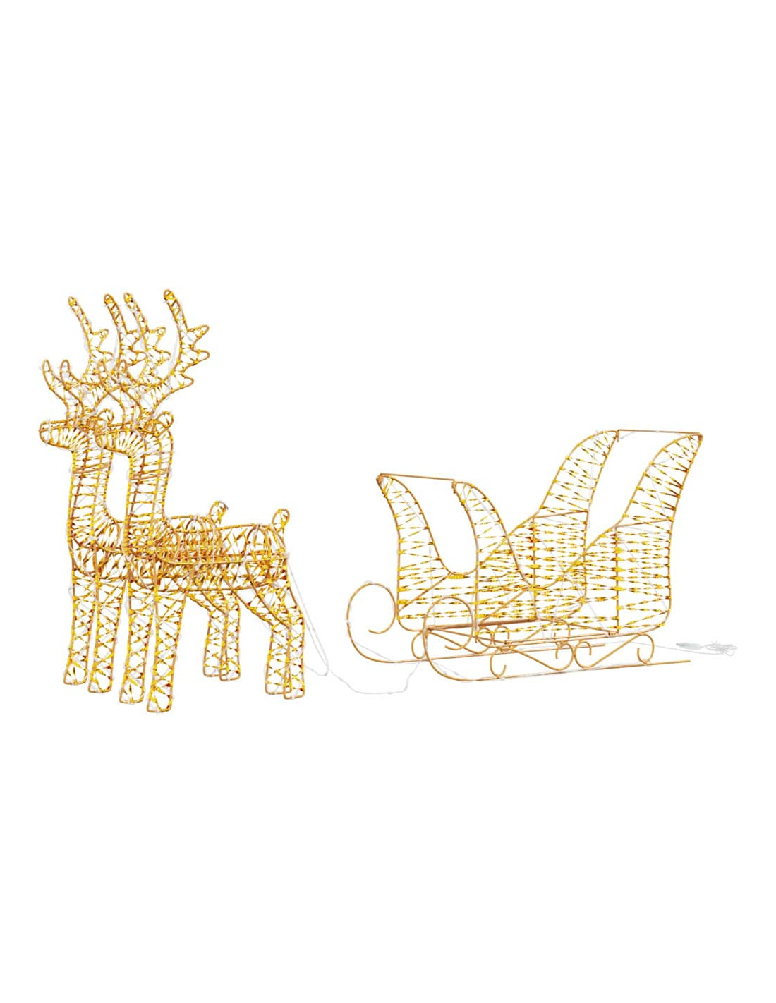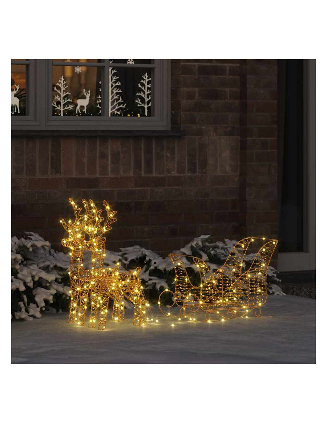 Questo pezzo decorativo natalizio a forma di slitta trainata da renna è l'aggiunta perfetta a qualsiasi allestimento festivo, unendo eleganza moderna a linee semplici e uno stile minimalista. Realizzato con materiali di alta qualità, è visivamente accattivante e si integra facilmente in soggiorni e terrazze da giardino, con toni caldi di bianco che portano un tocco incantevole alla decorazione. Le sue dimensioni lo rendono un vero punto focale, e può essere posizionato sia dentro che fuori, combinando il classico tema delle renne con un look contemporaneo.