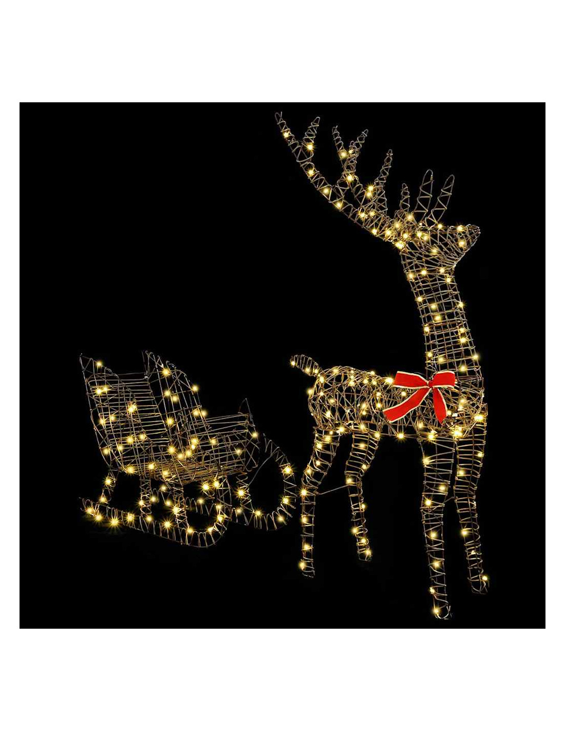 - Illuminazione di qualità: Con strisce LED flessibili, questa slitta di renne aggiunge un'atmosfera calda a qualsiasi ambiente. La luce bianco caldo crea un’atmosfera accogliente, perfetta per interni o per migliorare decorazioni all'aperto.