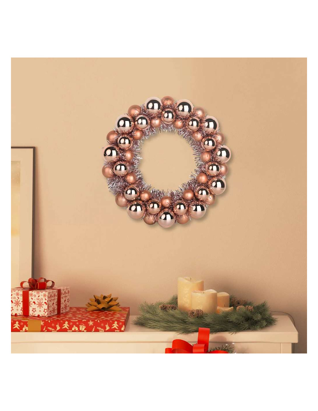 Questa ghirlanda di Natale è una decorazione fantastica che trasforma qualsiasi luogo con il suo design circolare e accattivante. È molto versatile, e porta subito un'atmosfera festiva nel tuo spazio. Ha un tocco moderno, che si abbina bene a uno stile semplice e funzionale. È ideale per chi cerca un'eleganza minimalista durante le feste. Perfetta per gli uffici o i soggiorni, questa ghirlanda colpisce con la sua forma elegante e le decorazioni festive, aggiungendo un tocco speciale alle tue celebrazioni.