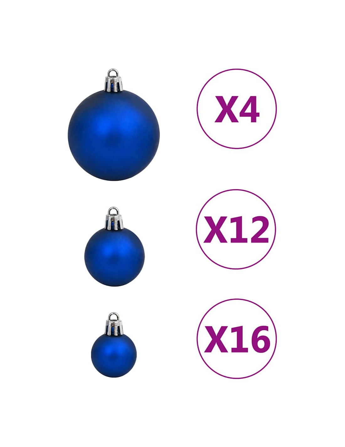 - Vari stili e dimensioni: Questa collezione di palline di Natale comprende palline di tre diametri (3 cm, 4 cm, e 6 cm), fiocchi di neve, stelle, e un puntale. Queste palline presentano quattro stili (opaco, brillantinato, lucido, e traforato).
