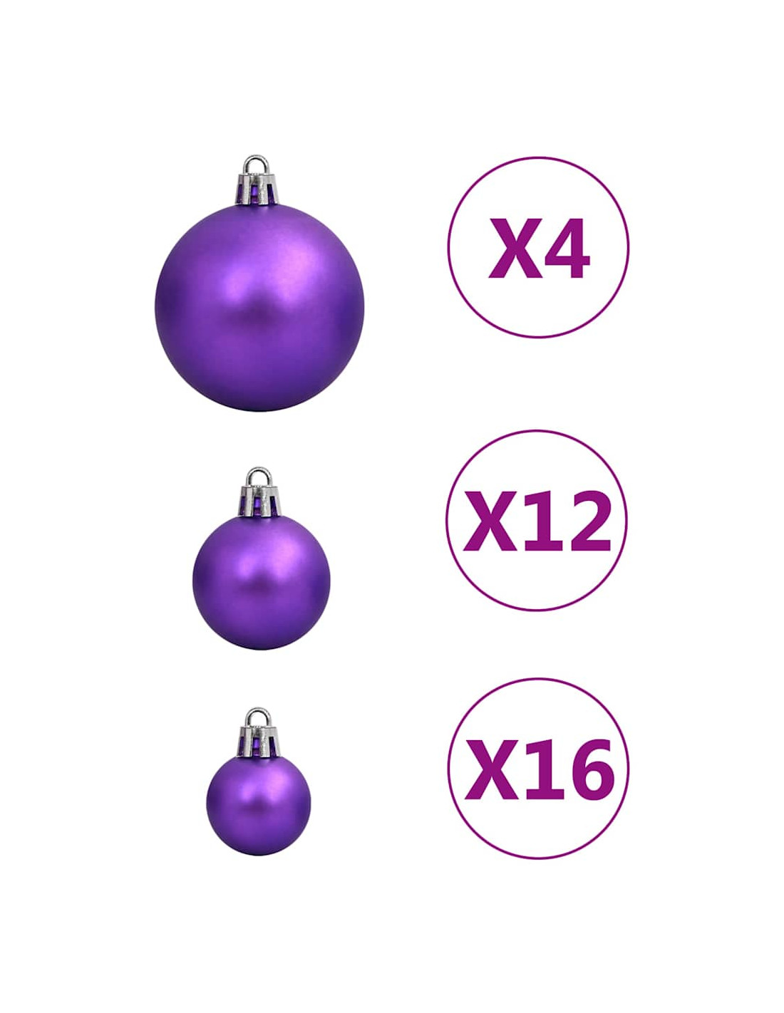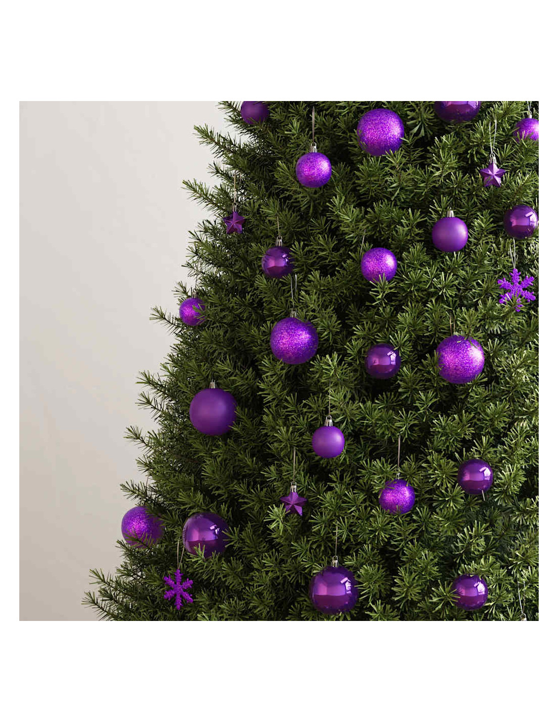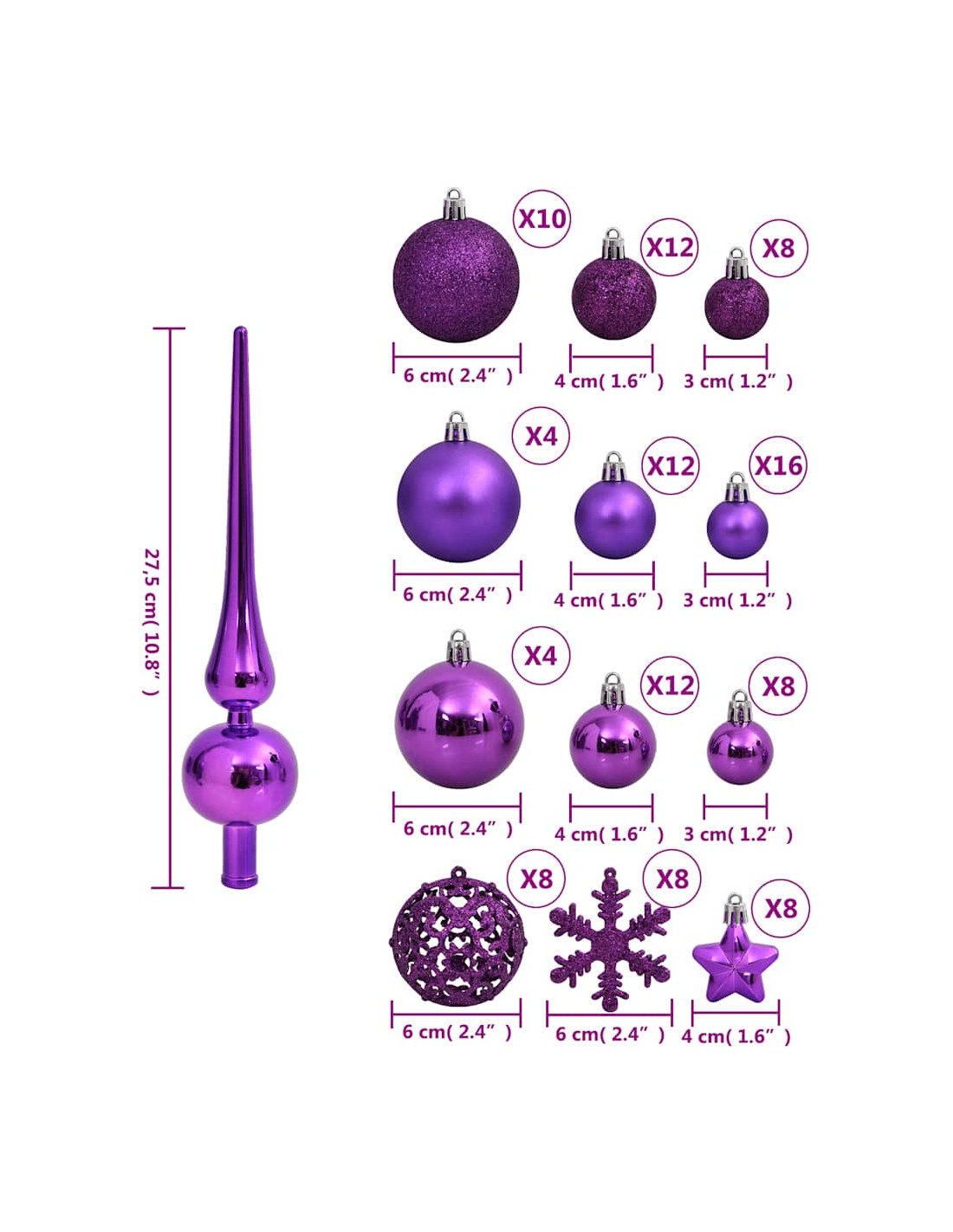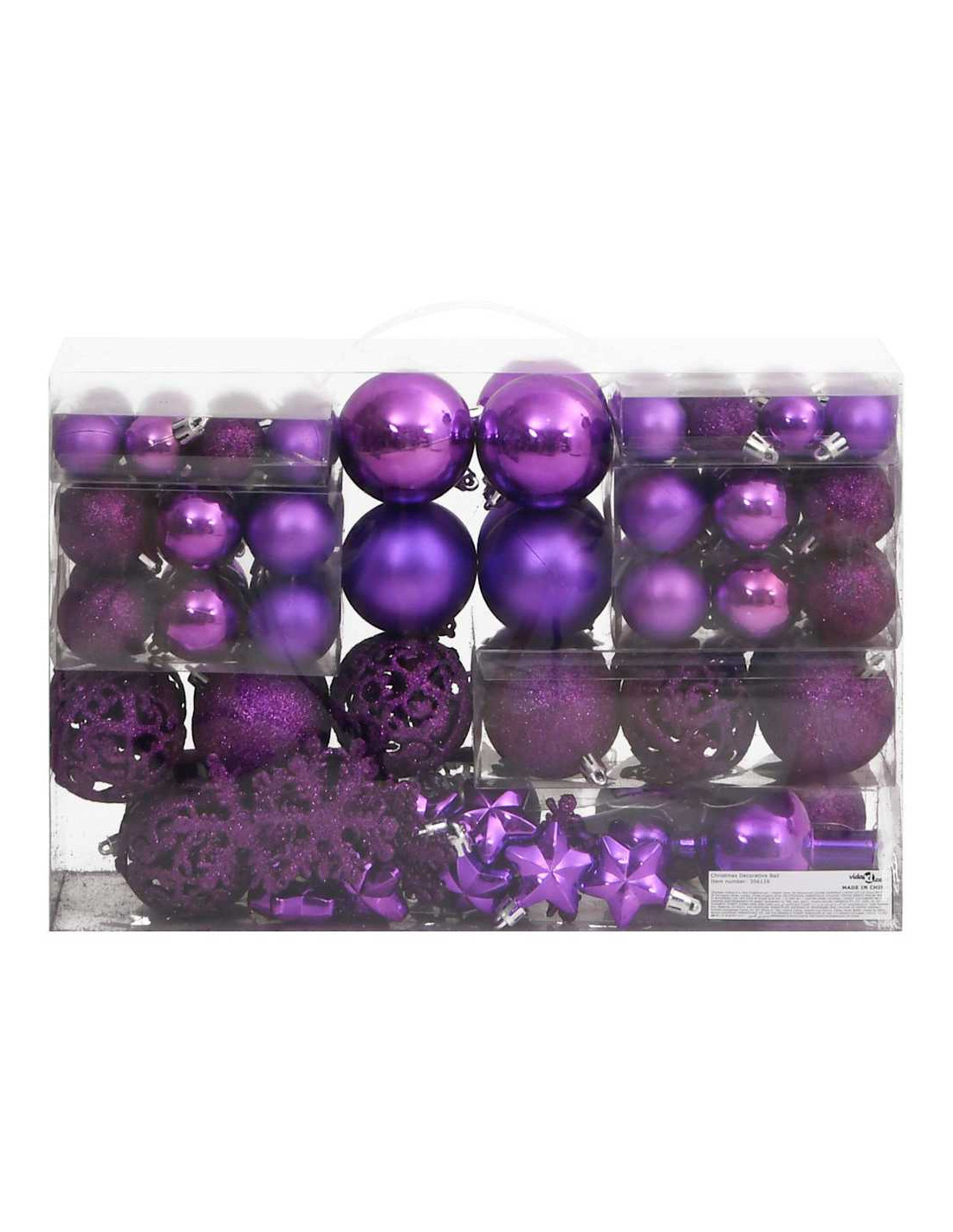 - Vari stili e dimensioni: Questa collezione di palline di Natale comprende palline di tre diametri (3 cm, 4 cm, e 6 cm), fiocchi di neve, stelle, e un puntale. Queste palline presentano quattro stili (opaco, brillantinato, lucido, e traforato).