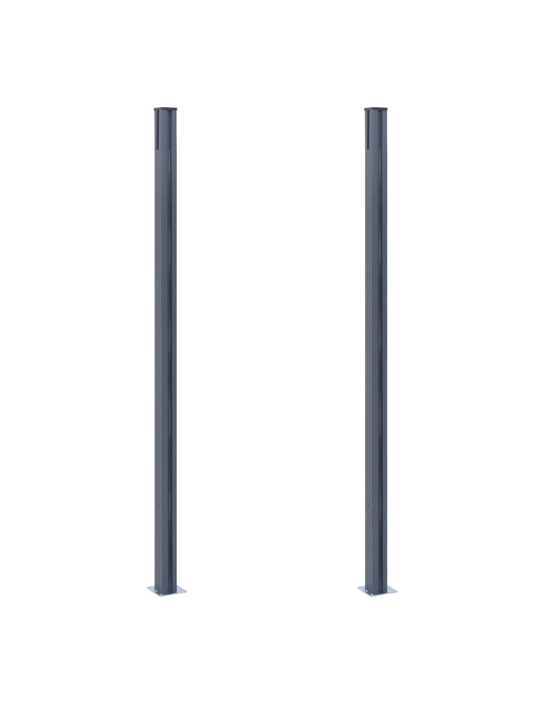 I paletti per recinzione da giardino, con tappi, sono realizzati in alluminio resistente agli agenti atmosferici. Questi pali da esterno sono compatibili con pannelli di recinzione di 2 cm di spessore. Con il palo, la recinzione può essere installata in linea retta o ad angolo a 90 gradi, grazie agli inserti integrati.