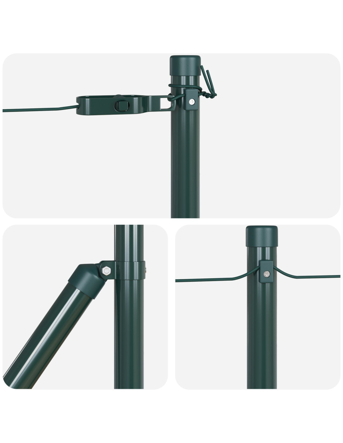 Questa scelta di materiali assicura durata anche in condizioni meteorologiche avverse, offrendoti un supporto forte per le tue esigenze di recinzione. Inoltre, la finitura liscia a polvere gli dà un look elegante, proteggendolo da scheggiature e graffi. - Componenti inclusi: Questo palo ha pochi pezzi da montare, rendendo il lavoro semplice. Grazie alla progettazione intelligente, basta usare un martello per conficcare il palo nel terreno. Si abbina perfettamente a cancelli e recinzioni, rendendolo un’opzione versatile per vari layout esterni, offrendo stabilità e funzionalità.