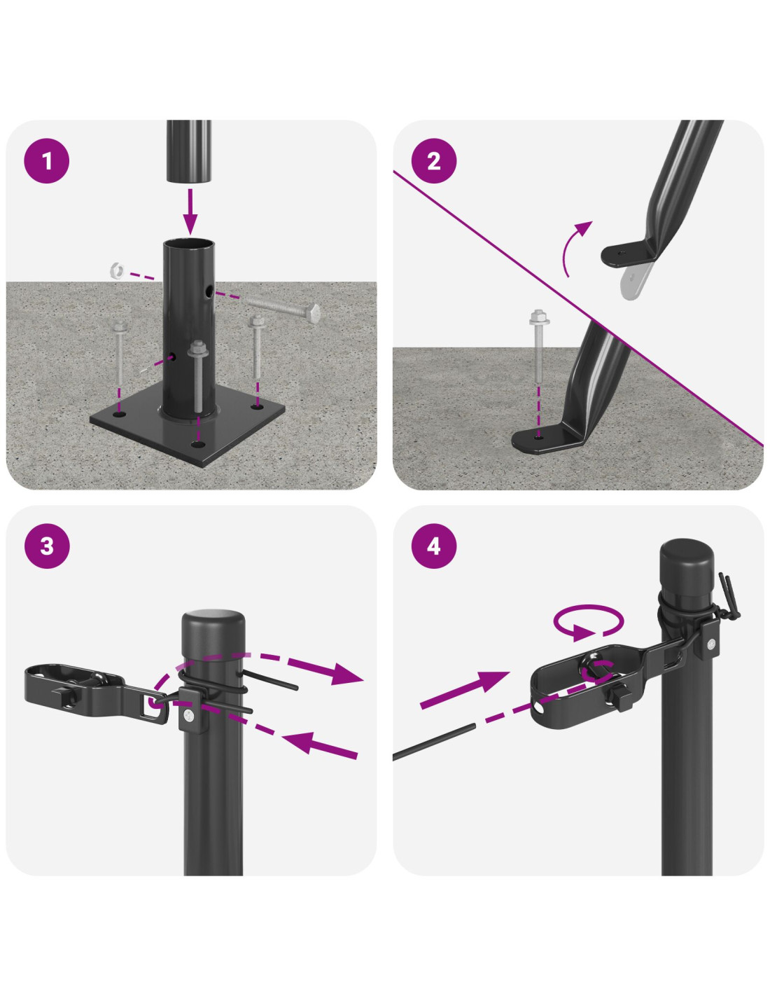 Questa scelta di materiali assicura durata anche in condizioni meteorologiche avverse, offrendoti un supporto forte per le tue esigenze di recinzione. Inoltre, la finitura liscia a polvere gli dà un look elegante, proteggendolo da scheggiature e graffi. - Componenti inclusi: Questo palo ha pochi pezzi da montare, rendendo il lavoro semplice. Grazie alla progettazione intelligente, basta usare un martello per conficcare il palo nel terreno. Si abbina perfettamente a cancelli e recinzioni, rendendolo un’opzione versatile per vari layout esterni, offrendo stabilità e funzionalità.