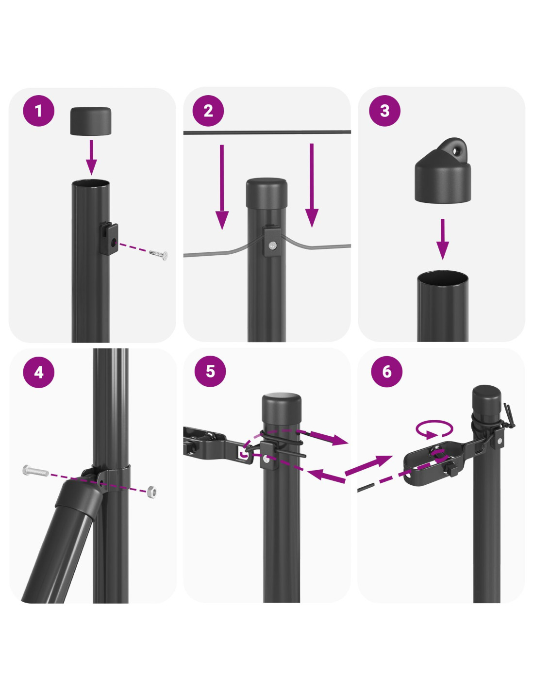 Questa scelta di materiali assicura durata anche in condizioni meteorologiche avverse, offrendoti un supporto forte per le tue esigenze di recinzione. Inoltre, la finitura liscia a polvere gli dà un look elegante, proteggendolo da scheggiature e graffi. - Componenti inclusi: Questo palo ha pochi pezzi da montare, rendendo il lavoro semplice. Grazie alla progettazione intelligente, basta usare un martello per conficcare il palo nel terreno. Si abbina perfettamente a cancelli e recinzioni, rendendolo un’opzione versatile per vari layout esterni, offrendo stabilità e funzionalità.
