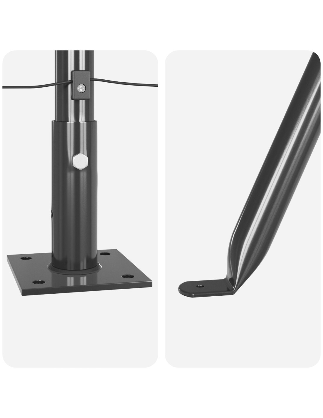 - Materiali: Il palo in cemento è fatto in acciaio zincato verniciato a polvere, noto per la sua grande resistenza.