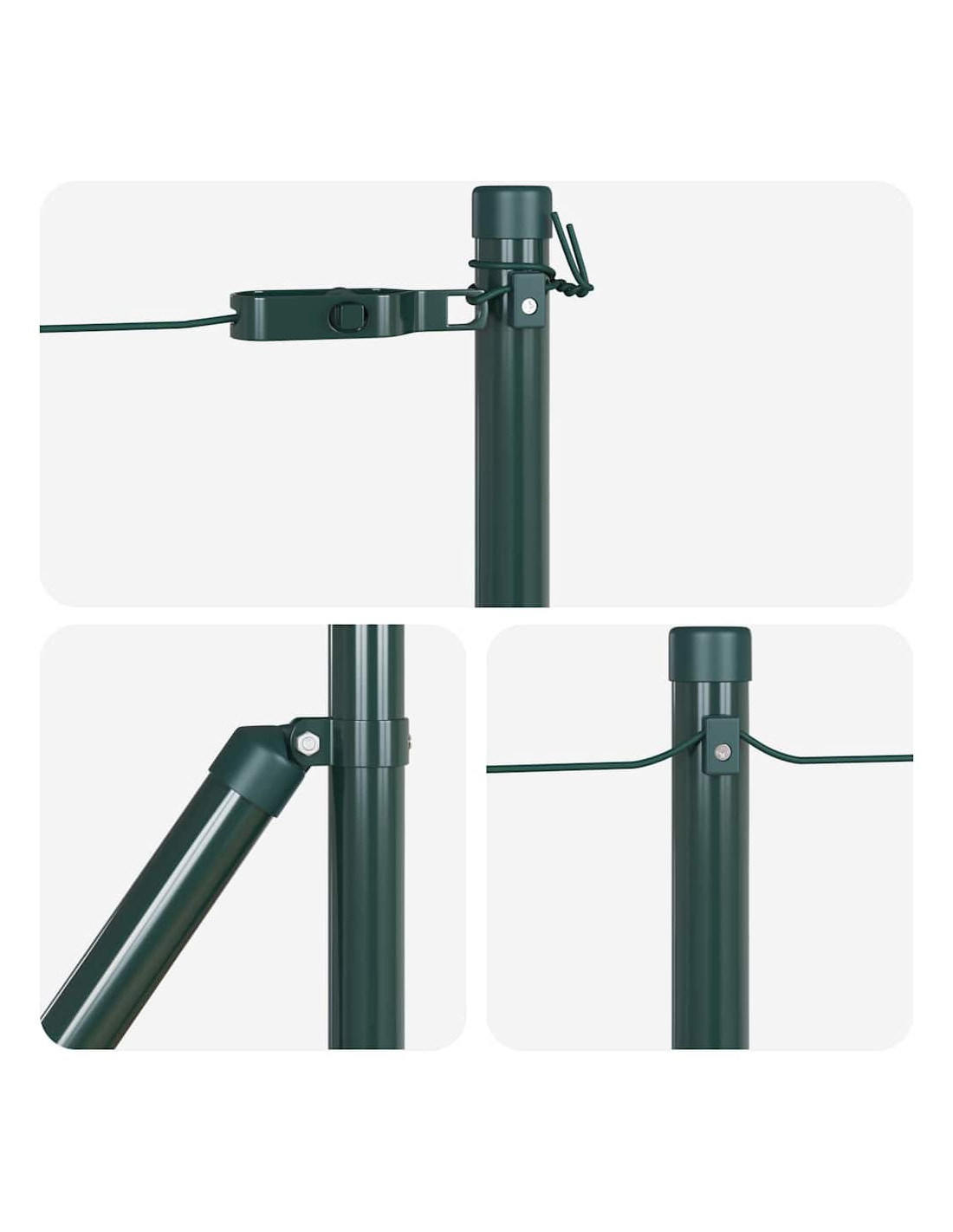 Questa scelta di materiali assicura durata anche in condizioni meteorologiche avverse, offrendoti un supporto forte per le tue esigenze di recinzione. Inoltre, la finitura liscia a polvere gli dà un look elegante, proteggendolo da scheggiature e graffi. - Componenti inclusi: Questo palo ha pochi pezzi da montare, rendendo il lavoro semplice. Grazie alla progettazione intelligente, basta usare un martello per conficcare il palo nel terreno. Si abbina perfettamente a cancelli e recinzioni, rendendolo un’opzione versatile per vari layout esterni, offrendo stabilità e funzionalità.