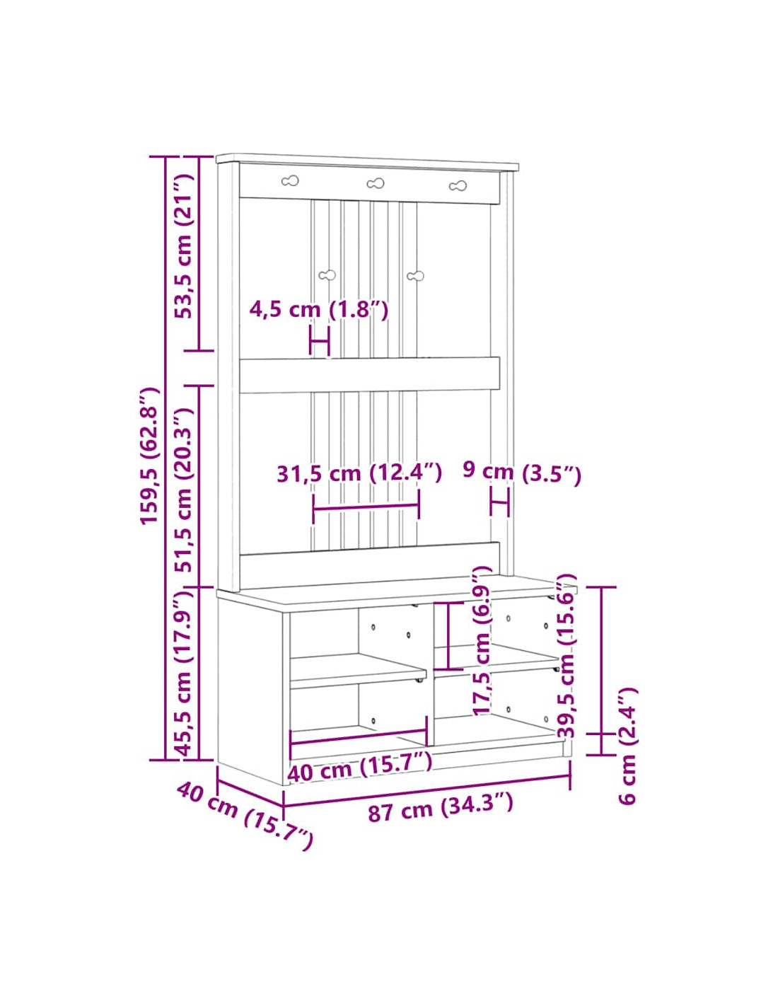 - Dimensioni: 87 x 40 x 159,5 cm (L x P x A)