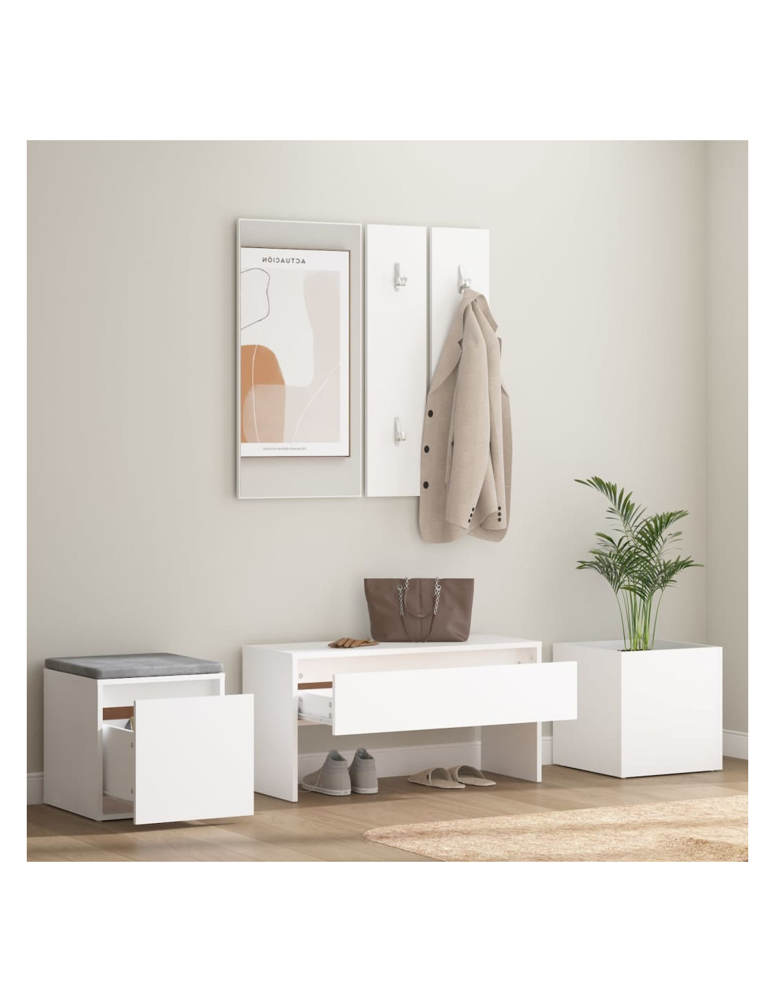 Create un ambiente caldo e accogliente proprio accanto alla vostra porta con questo set di mobili da ingresso!