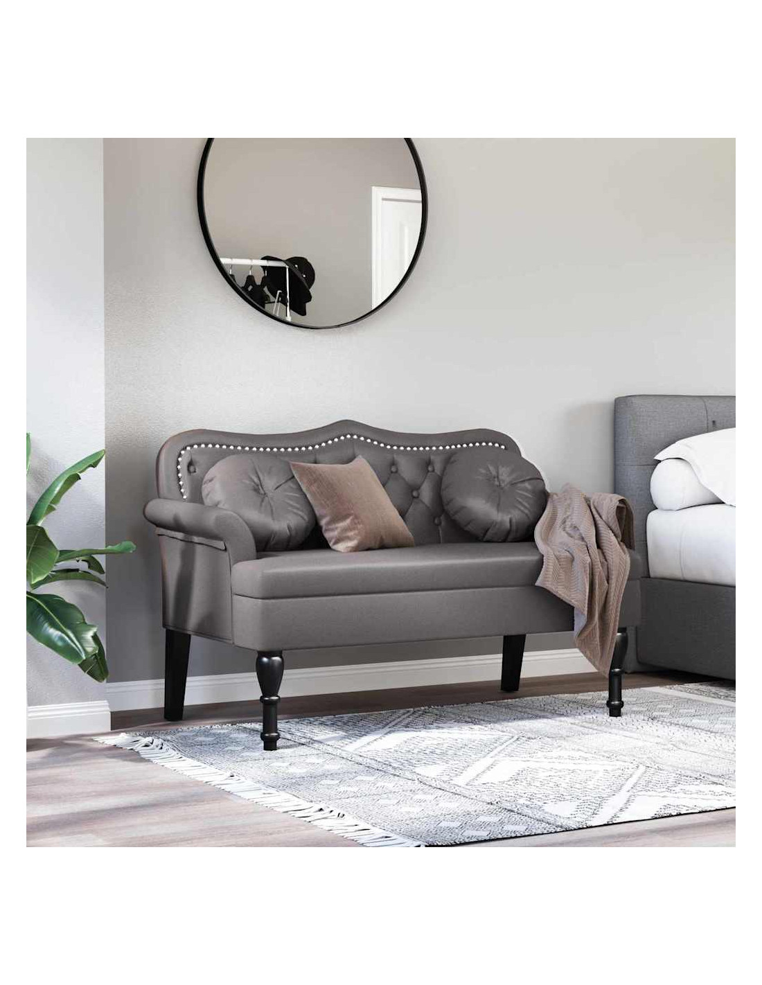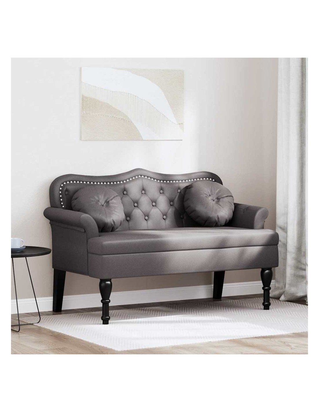- Caratteristiche /Funzione /Design: Con stilose cuciture a bottoni su sedile e schiena, questa panca porta un tocco di eleganza in qualsiasi casa. I dettagli tradizionali bilanciano stili classici e moderni, mentre la struttura solida garantisce supporto costante. Si adatta a vari ambienti, che sia in soggiorno, ingresso o camera da letto, diventando sia un pezzo decorativo che un comodo posto a sedere.
