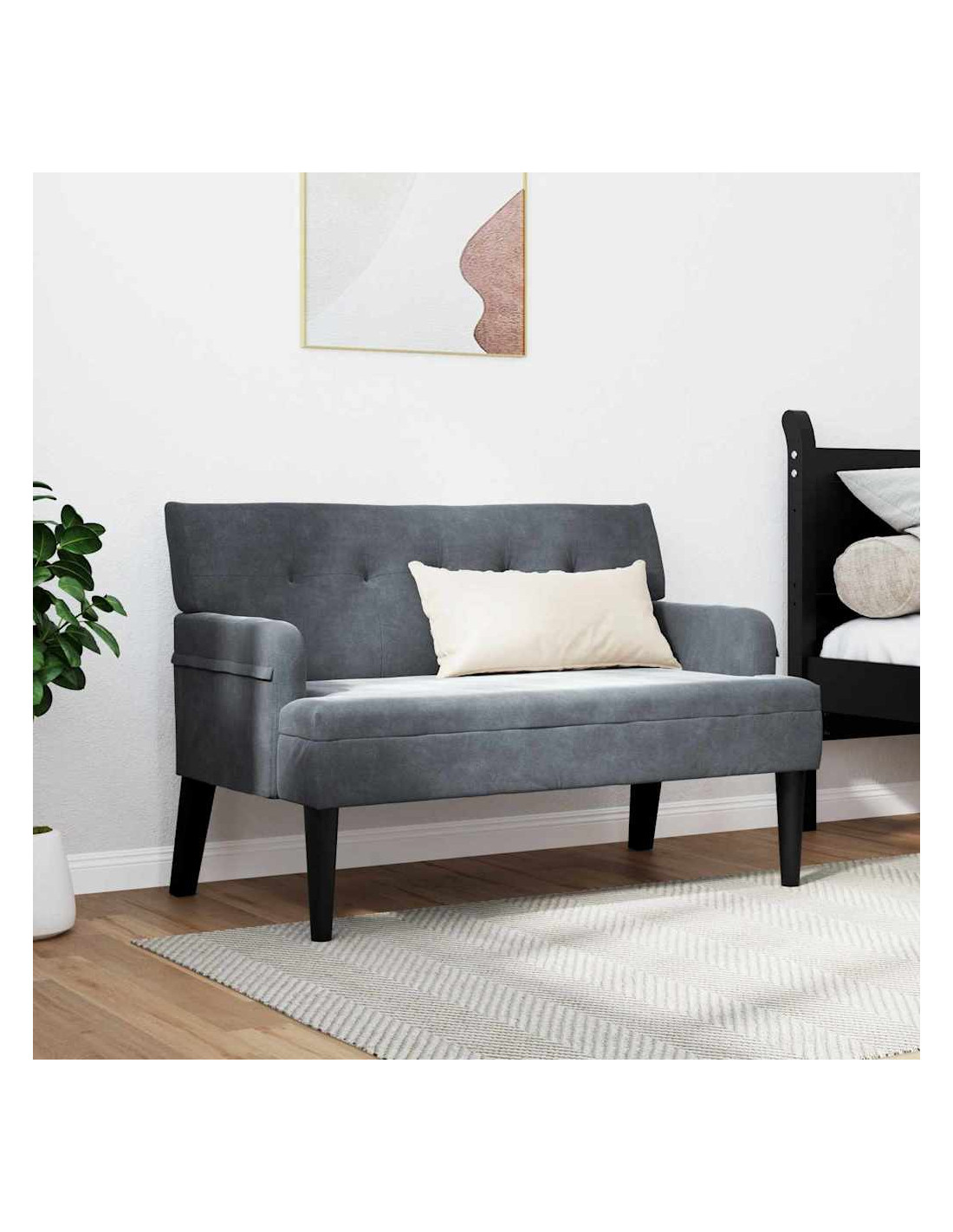 - Struttura robusta: Realizzato in compensato con gambe in legno di gomma, questo pezzo è elegante e solido. Garantisce una seduta stabile e mantiene il design alla grande senza compromettere la solidità.